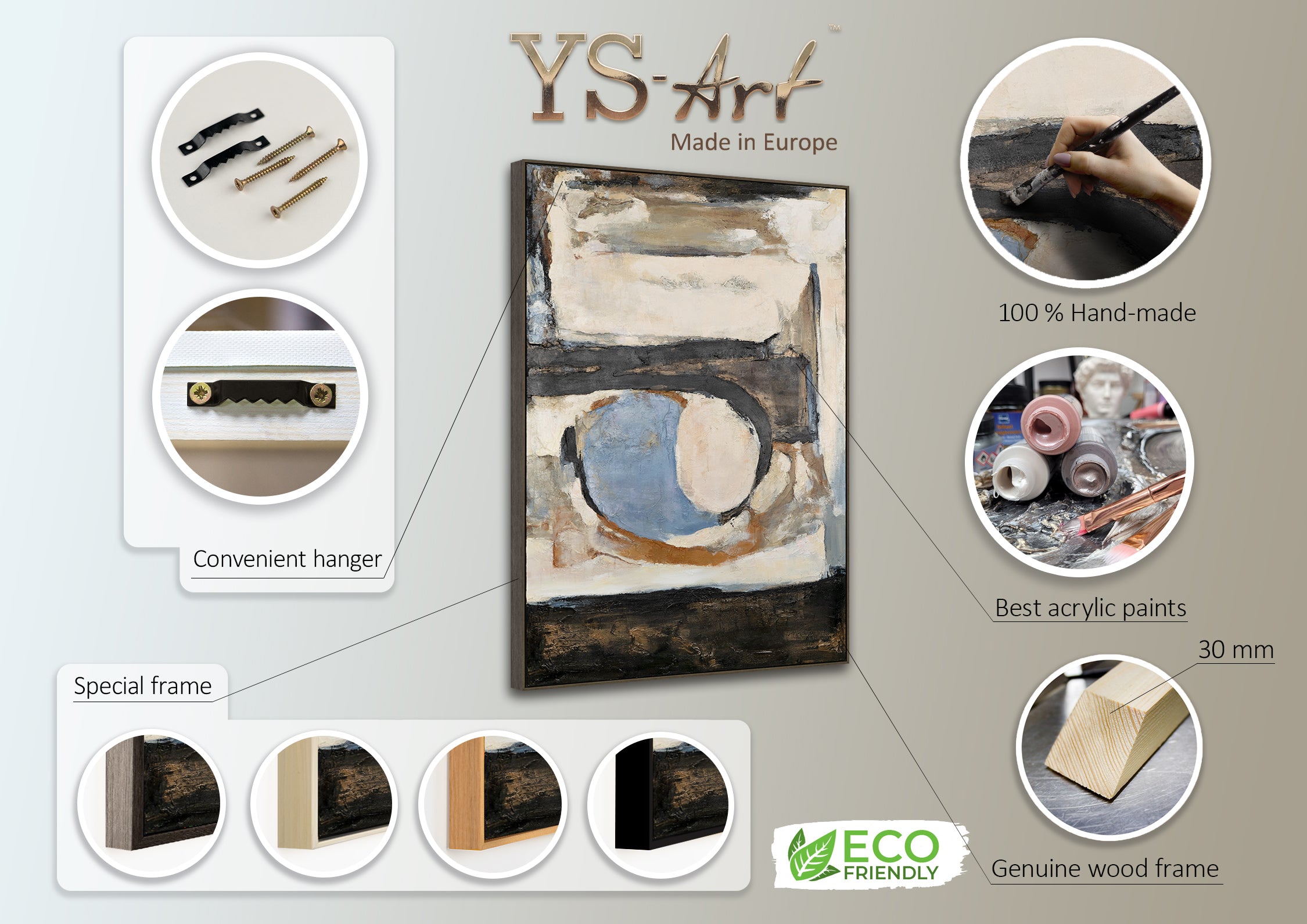 Entdecken Sie die Schönheit Handgemalte Bilder mit diesem exquisiten abstrakten Bild, das in einem hochwertigen Rahmen präsentiert wird. Jedes Stück ist ein Unikat, geschaffen mit einer Mischung aus Leidenschaft und Präzision, und bietet eine strukturierte Oberfläche, die jedem Raum Tiefe und Charakter verleiht. Die Abmessungen des Kunstwerks wurden sorgfältig ausgewählt, um eine bedeutende Präsenz an Ihrer Wand zu schaffen, ohne dabei aufdringlich zu wirken.