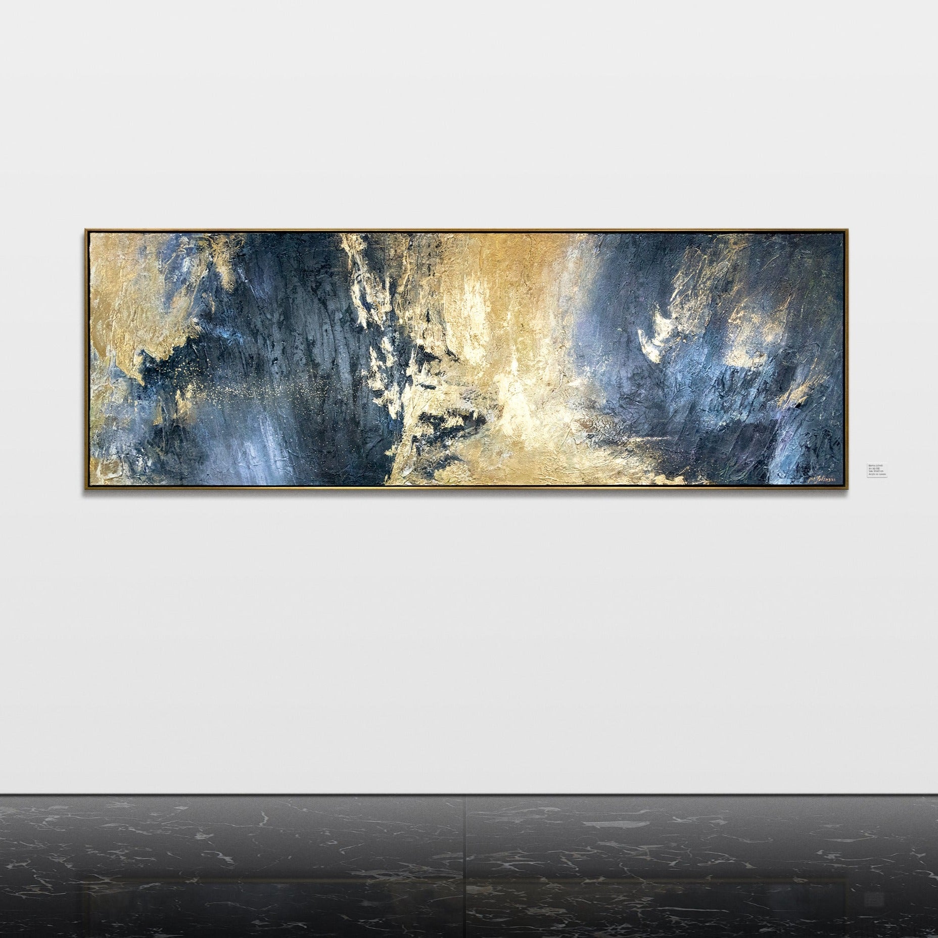 Bringen Sie Luxus und Eleganz in Ihr Zuhause mit diesem atemberaubenden handgefertigten abstrakten Gemälde. Die Kombination aus tiefen Blautönen und glänzenden Goldakzenten verleiht dem Bild eine faszinierende Ausstrahlung und macht es zum perfekten Highlight für jeden Raum. Jedes Detail dieses Kunstwerks ist mit höchster Präzision von Hand gemalt, was es zu einem einzigartigen Unikat macht. Genießen Sie die Vorteile einer kostenlosen Lieferung direkt zu Ihnen nach Hause.