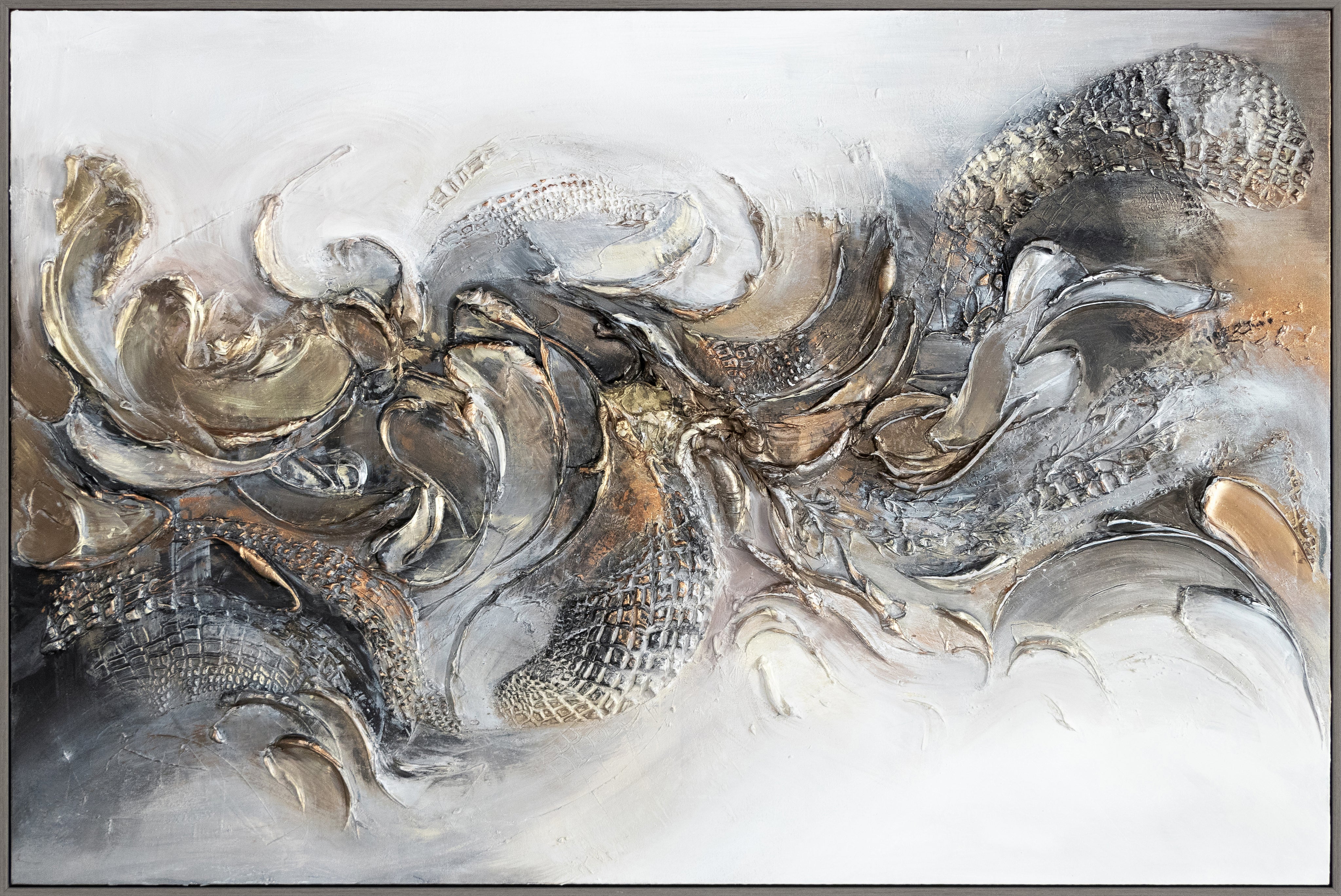 Eine Abstraktion, die durch Ihre Farben und Texturen beeindruckt. Ein solches Gemälde wird nicht nur das Interieur Ihres Hauses oder Büros ergänzen, sondern auch den Ton angeben und die notwendigen Akzente setzen. Der Luxus und die Eleganz dieses Kunstwerks werden durch den stillvollen Rahmen betont.