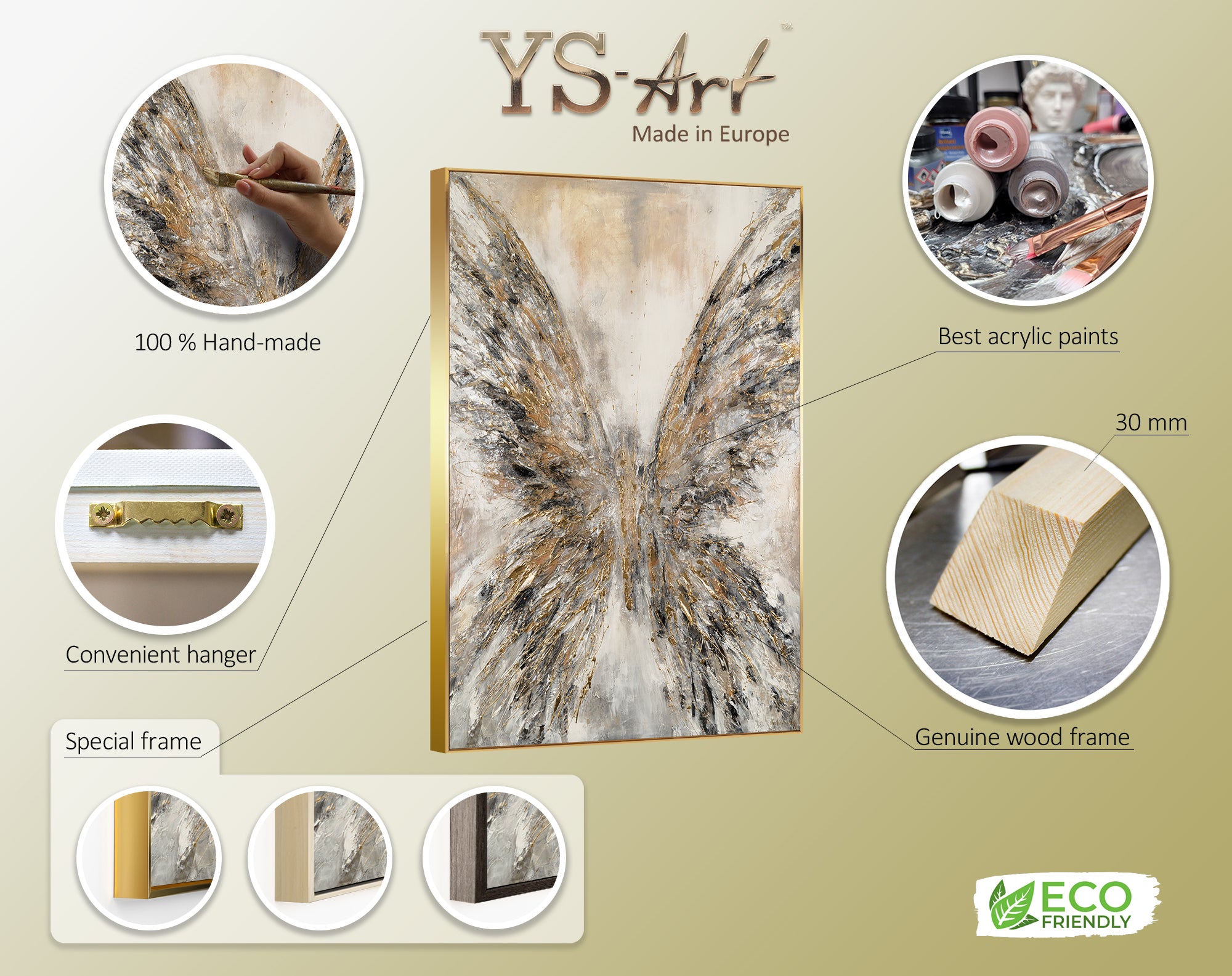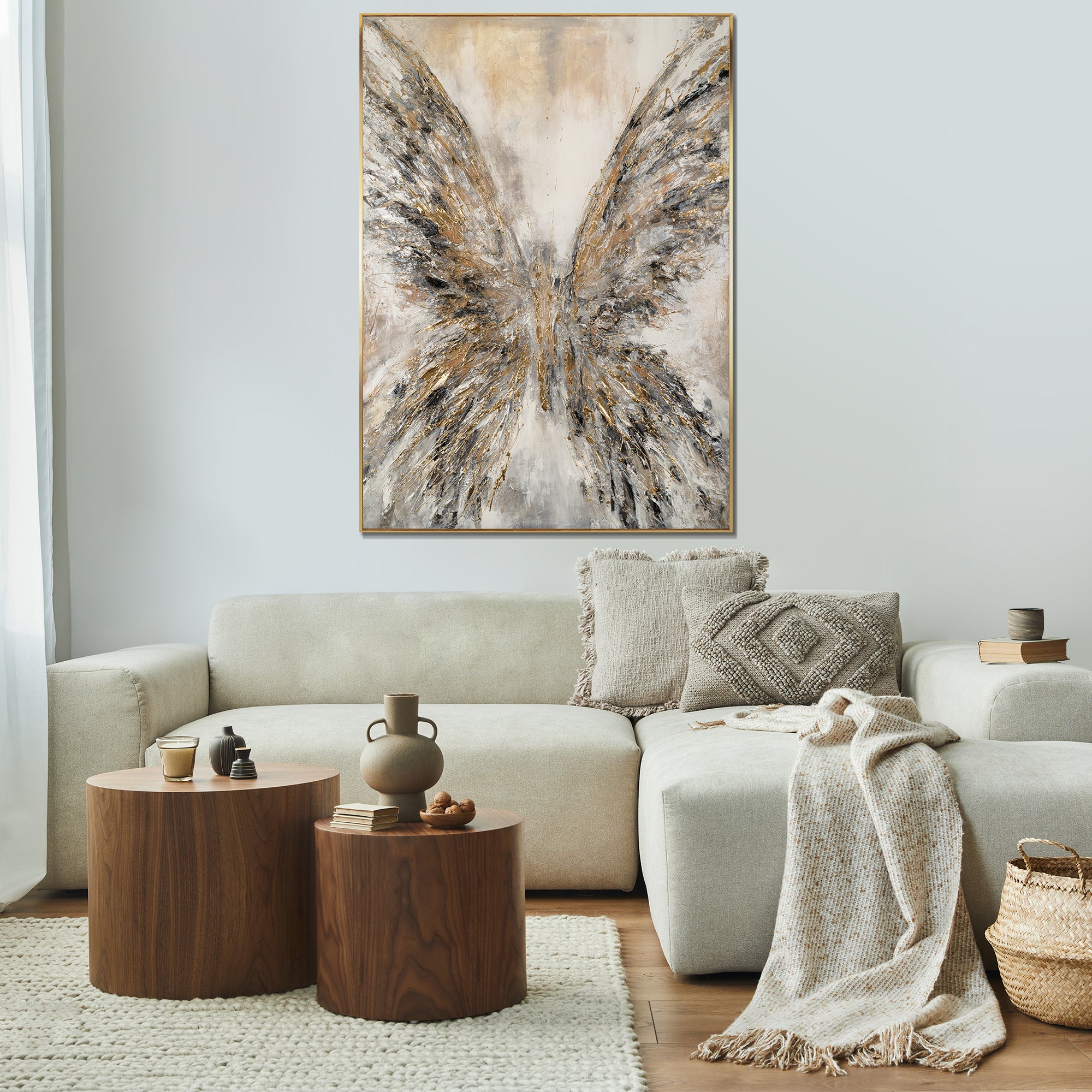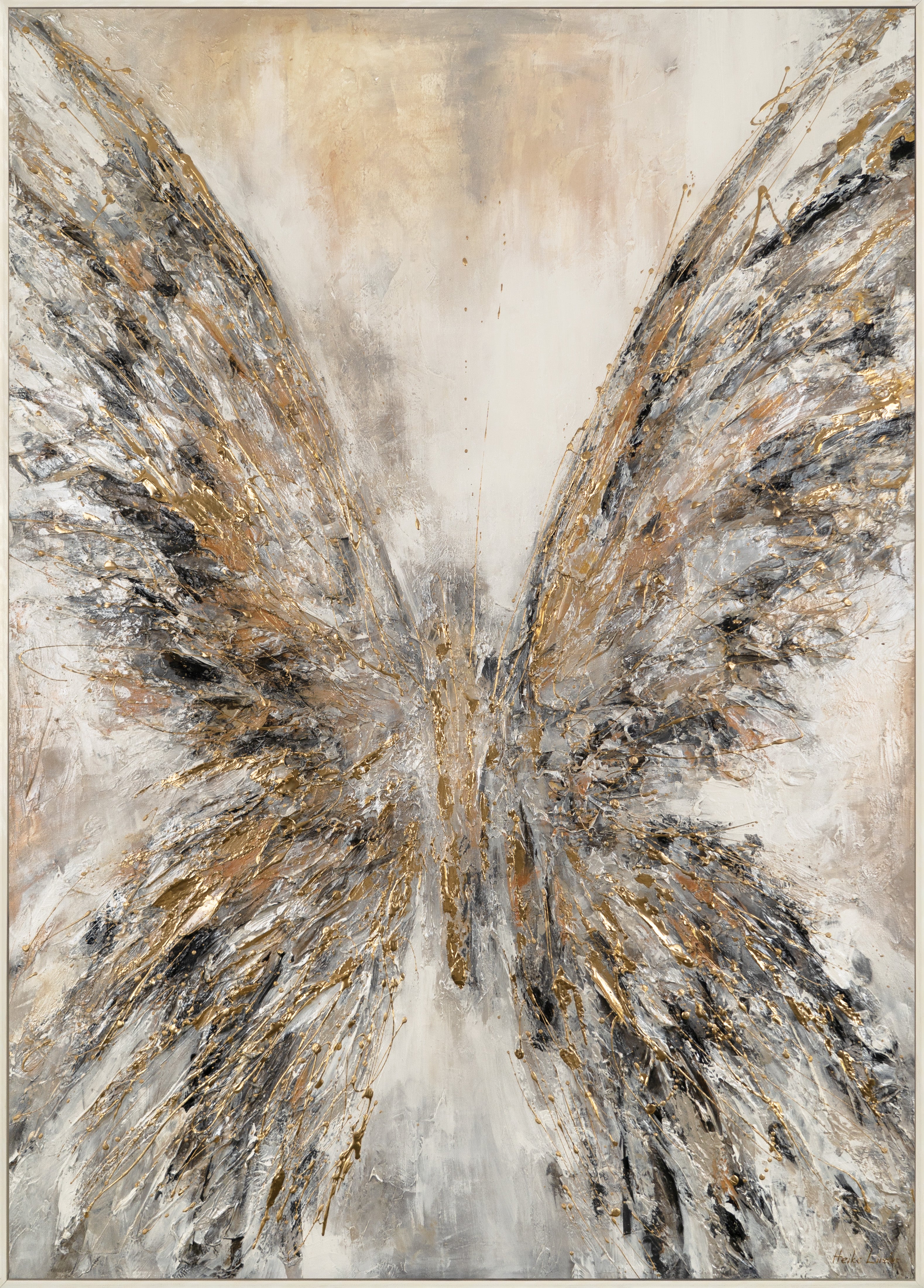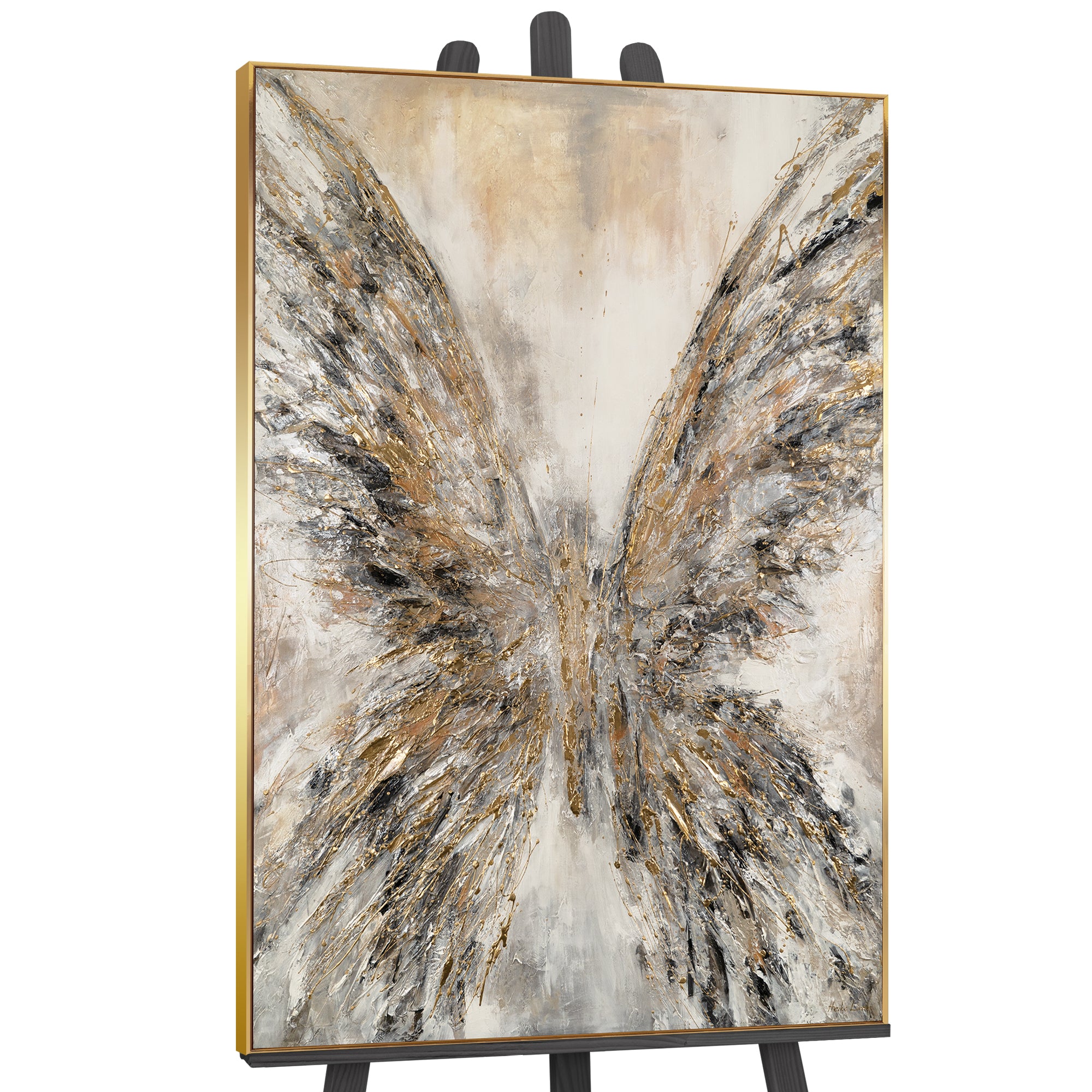 • Abstrakte Engelflügel Wandkunst handgemalt Gold Grau Deko