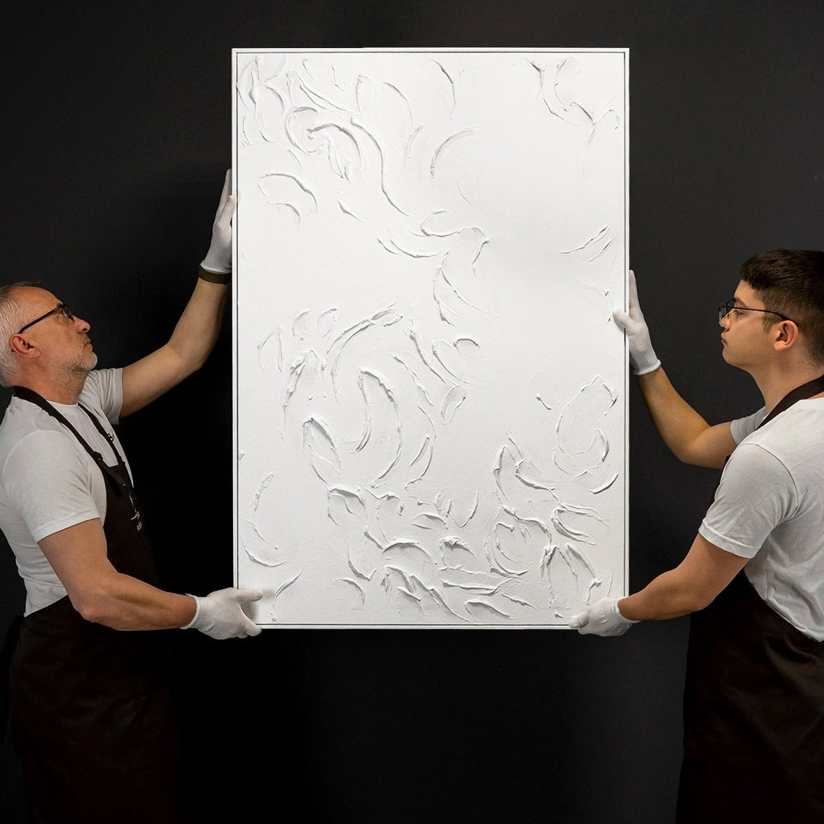 • Gerolltes Leinwandbild mit weißer Struktur, Acryl auf Canvas