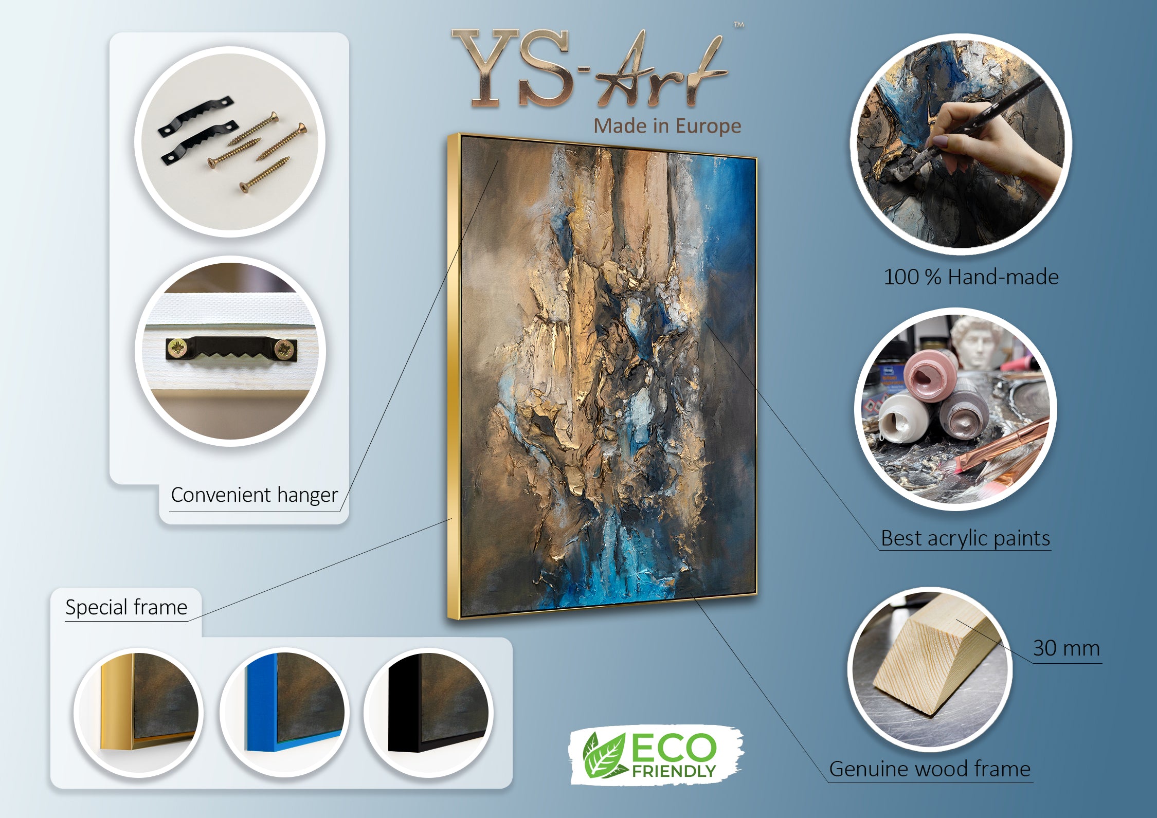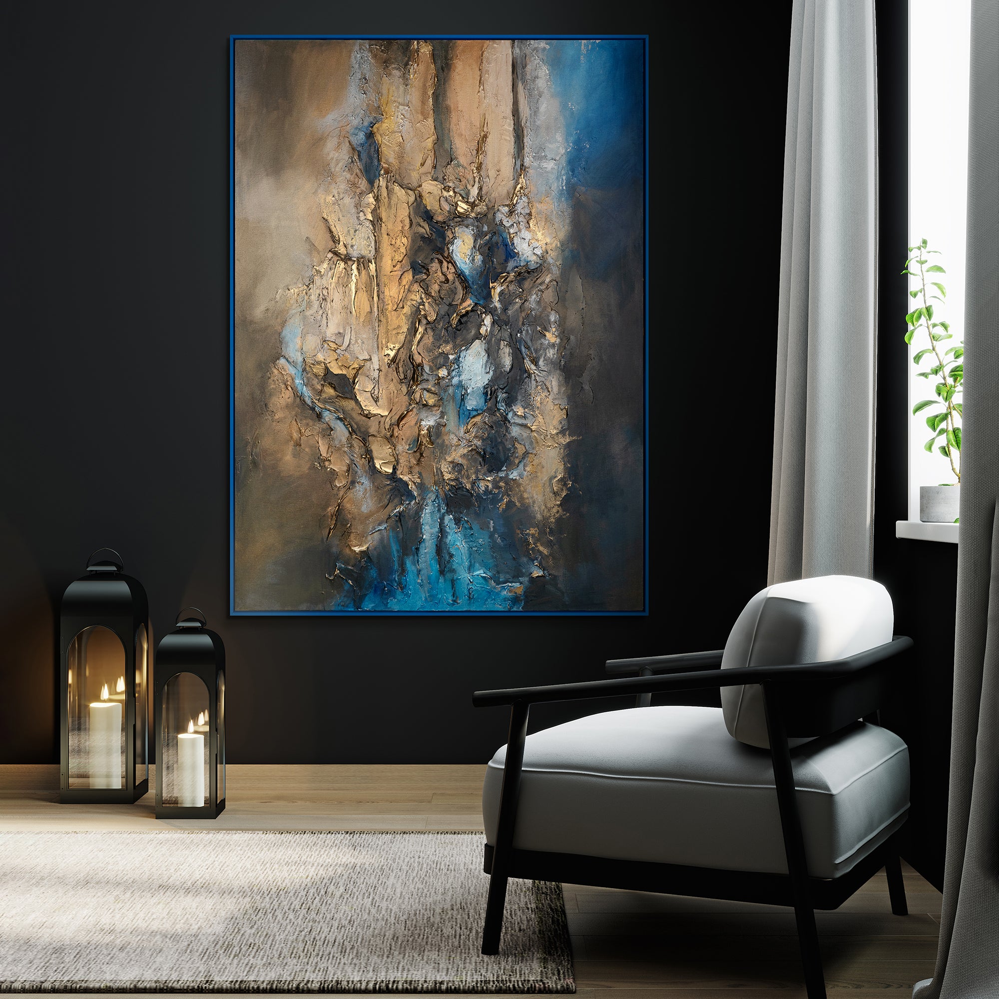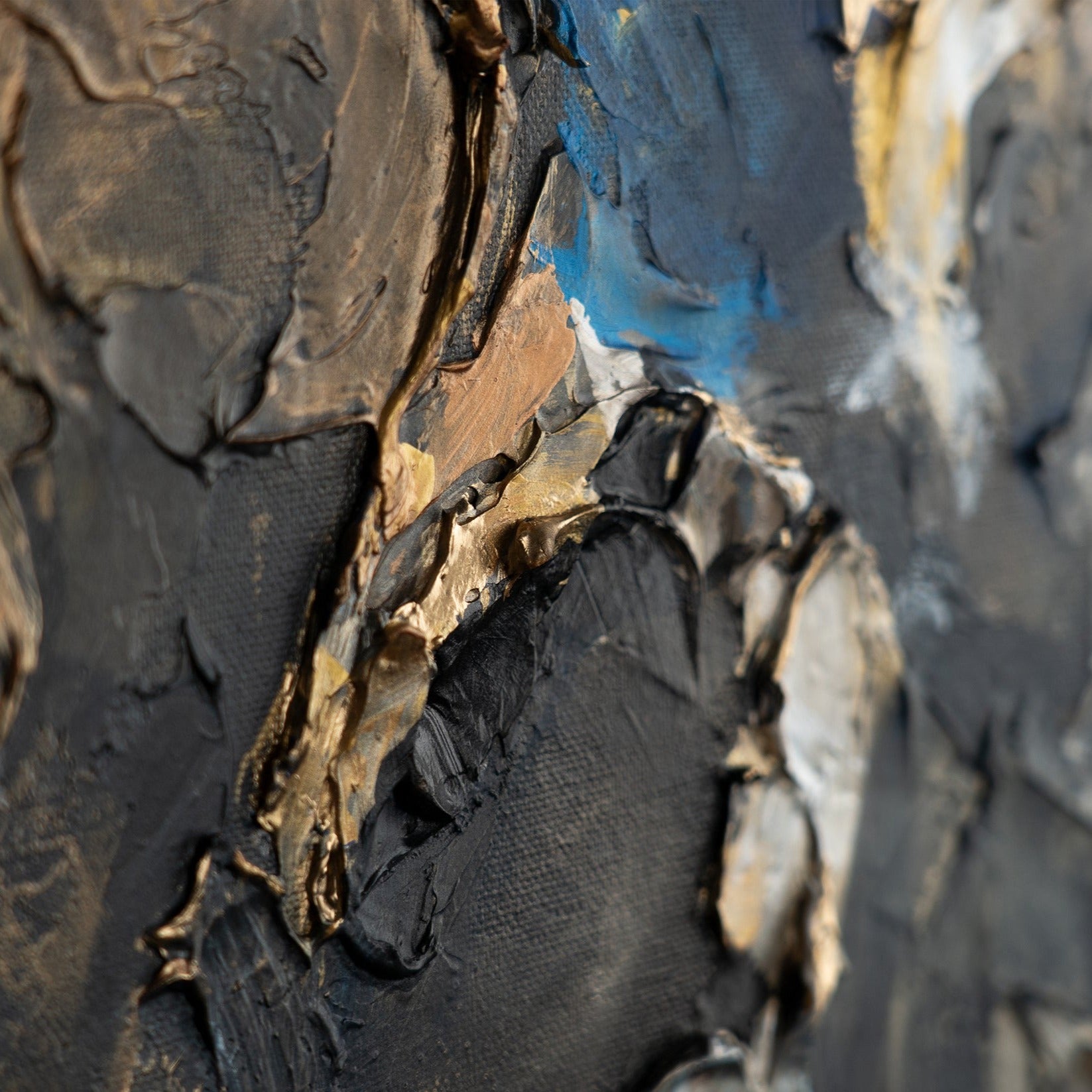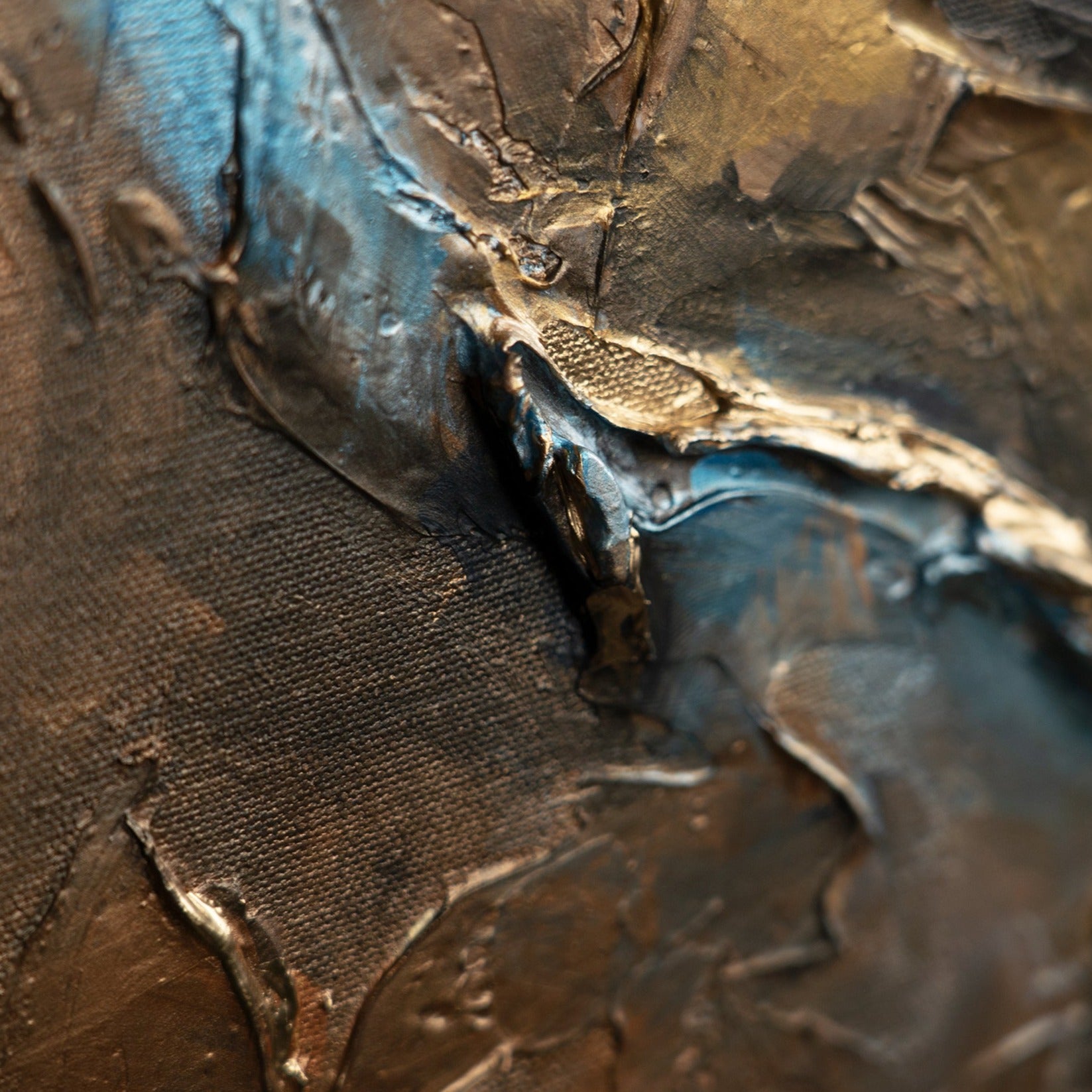 • Abstraktes Acrylbild Handgemalt Struktur Blau Gold