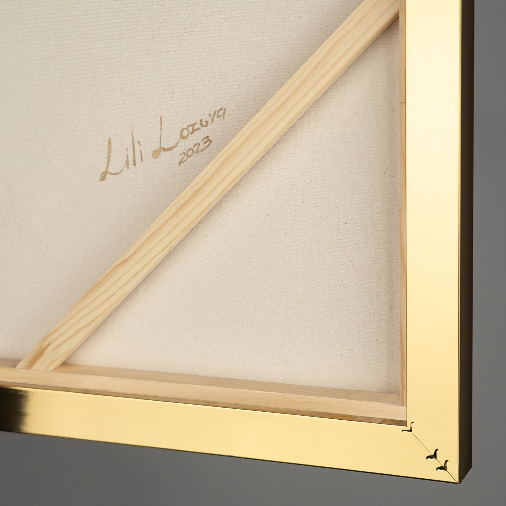 Tauchen Sie ein in die Welt der modernen Abstraktion mit diesem exquisiten, handgemalten Kunstwerk, das jedem Raum einen Hauch von Luxus verleiht. Dieses einzigartige Kunstwerk wurde mit Leidenschaft und Präzision gefertigt und zeichnet sich durch ein abstraktes Design mit eleganten Goldakzenten aus, die schimmern und das Licht einfangen, wodurch ein dynamischer visueller Effekt entsteht. Das Bild ist wunderschön gerahmt und misst großzügige 120x80, 140x100 oder 180x120 cm und ist damit das perfekte Statement-Kunstwerk für Ihr Wohnzimmer, Büro oder Schlafzimmer. Die Mischung aus kräftigen Strichen und subtilen Farbtönen sorgt dafür, dass es zu einer Vielzahl von Inneneinrichtungen passt.