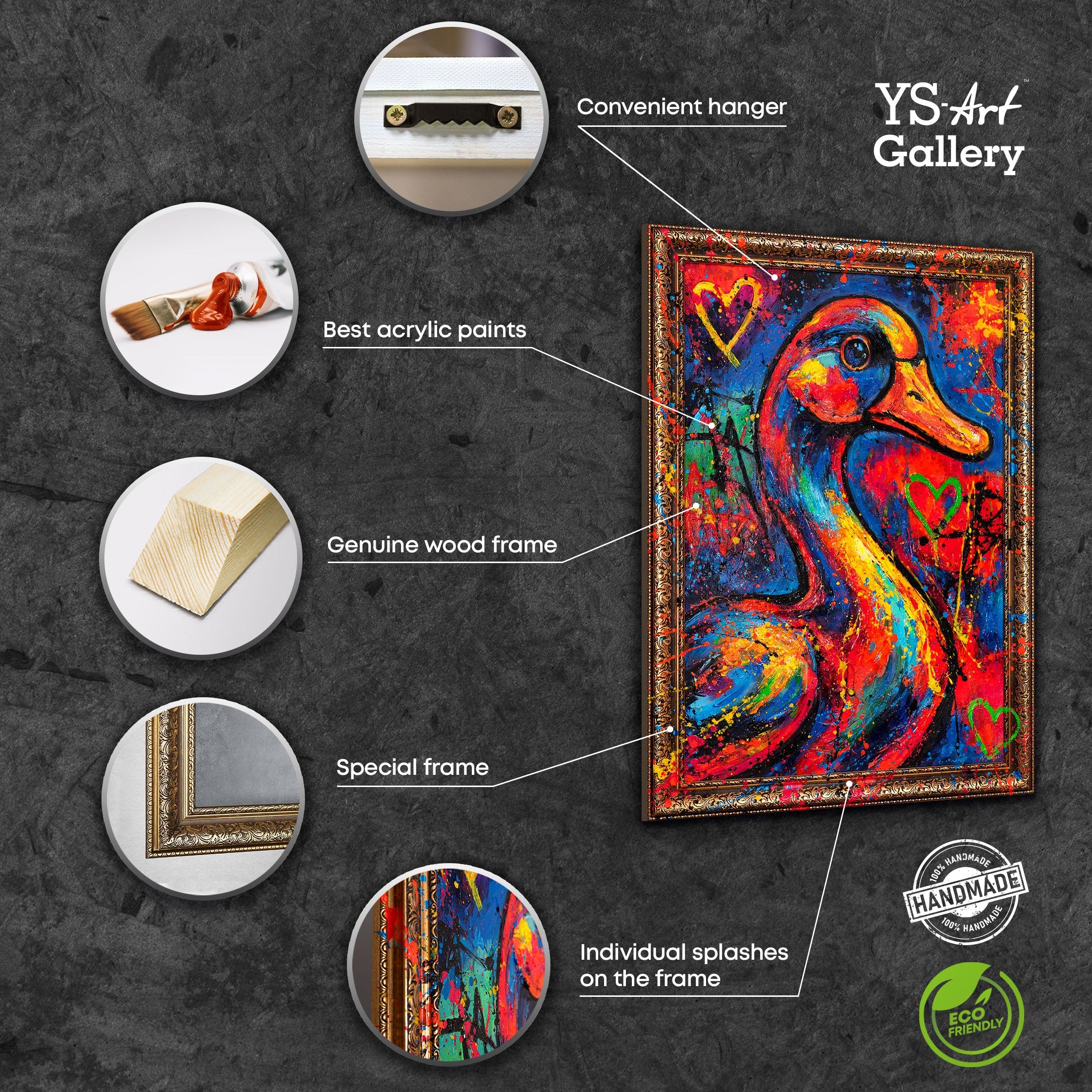 • Bunte Ente auf Leinwand handgemaltes Acrylbild im Atelier