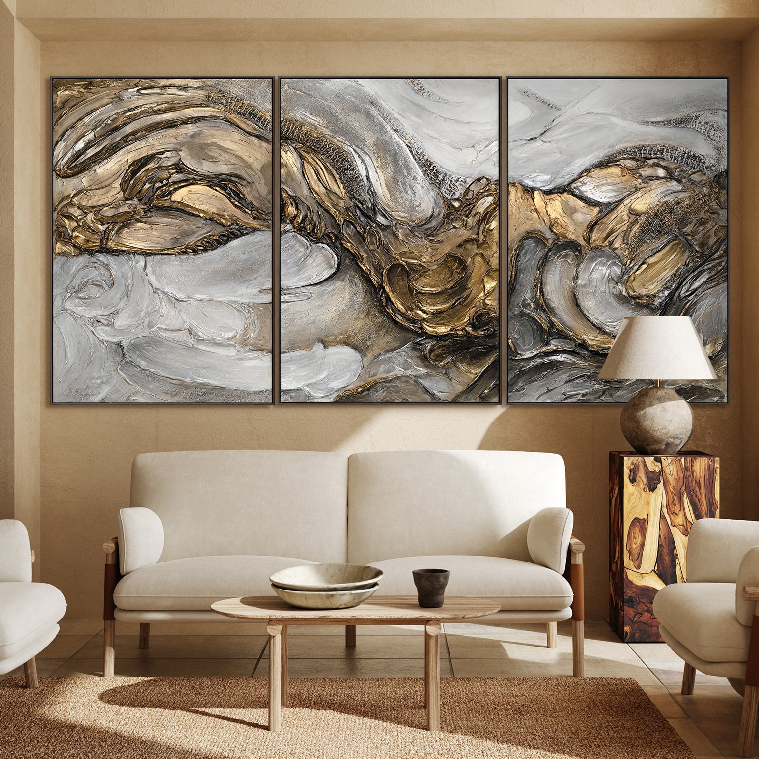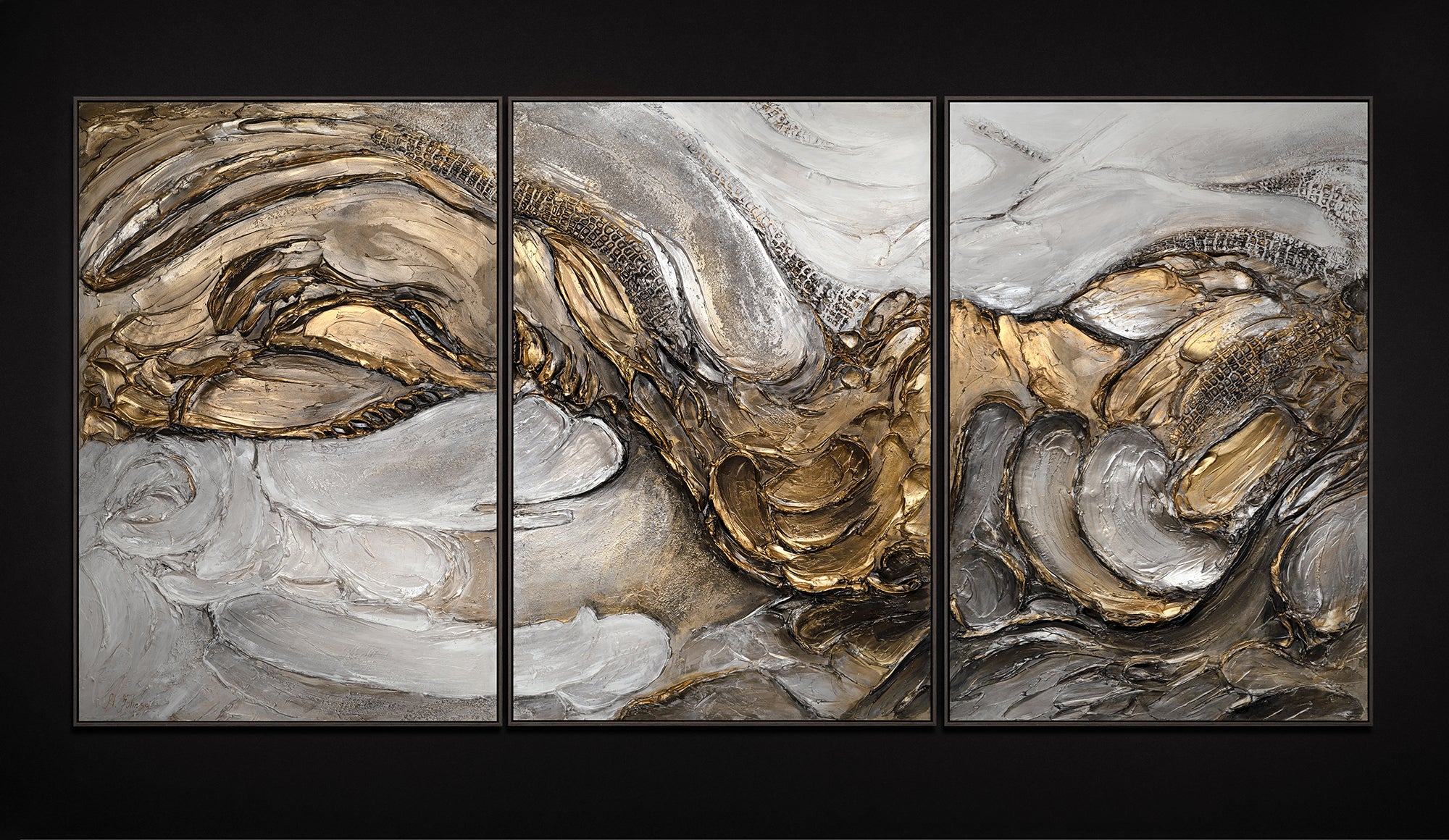 • Handgefertigt: Jedes Gemälde wird sorgfältig von Hand gefertigt, unter Verwendung hochwertiger Materialien und eines einzigartigen Ansatzes zur Erzeugung von Texturen.