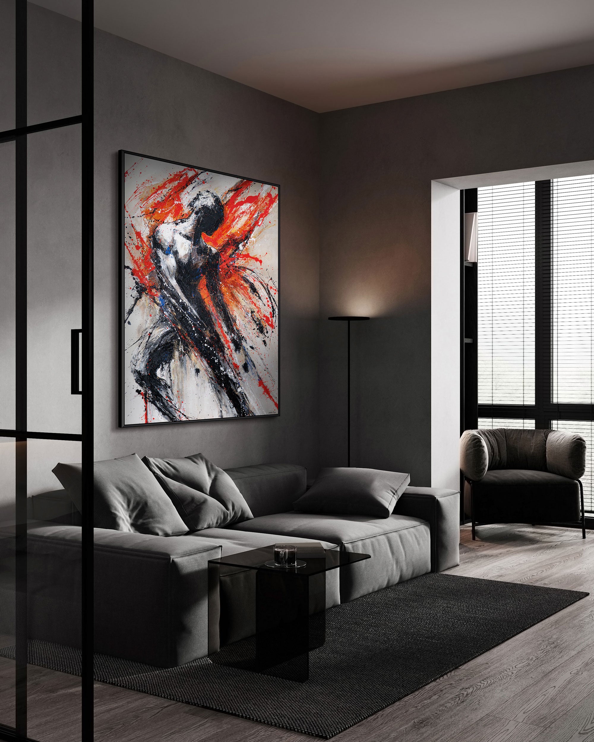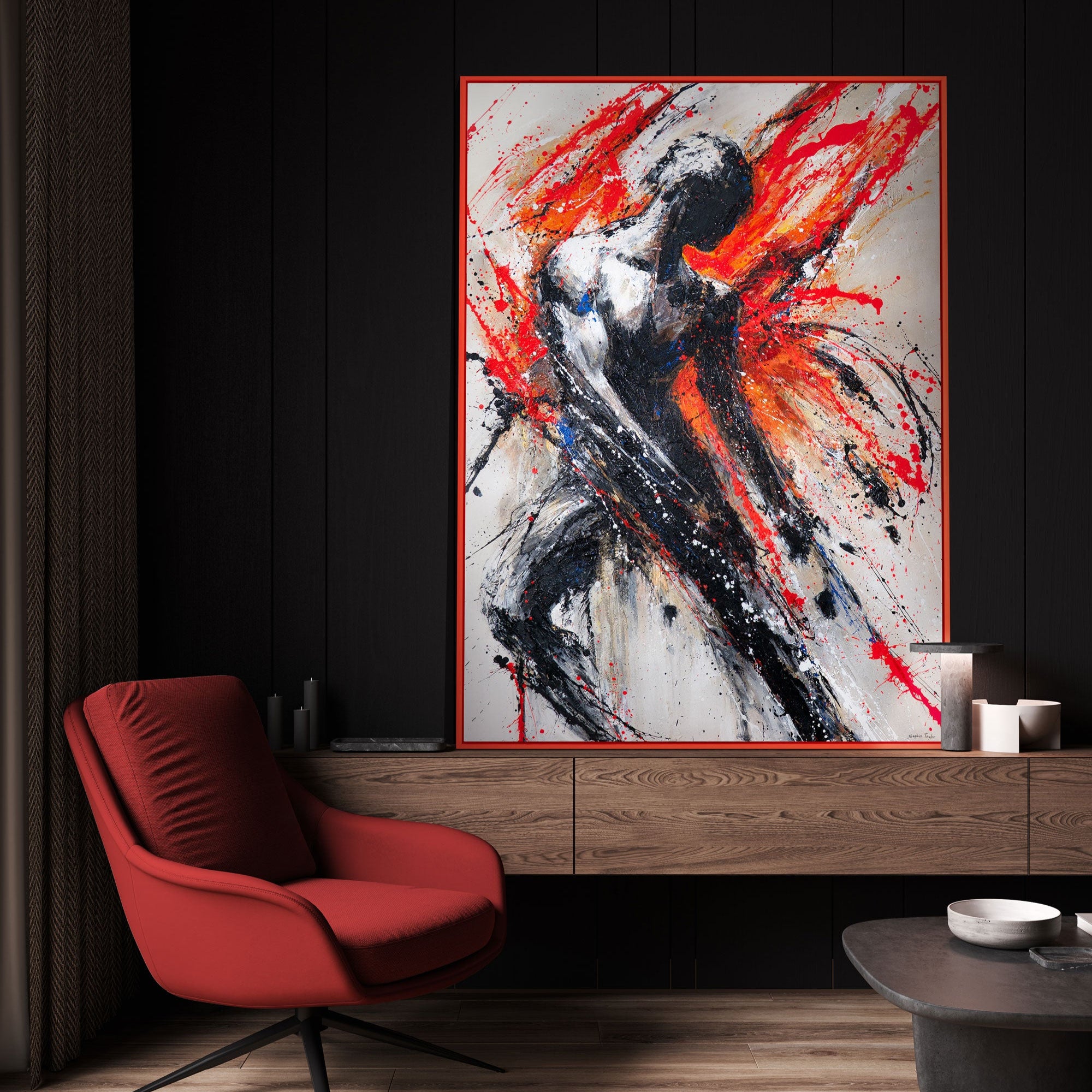 Ideal für moderne und minimalistische Innenräume, ist dieses Kunstwerk ein kraftvoller Blickfang im Wohnzimmer, Büro oder Studio. Jedes Stück wird individuell von erfahrenen Künstlern mit hochwertigen Materialien handgefertigt und ist ein echtes Unikat.