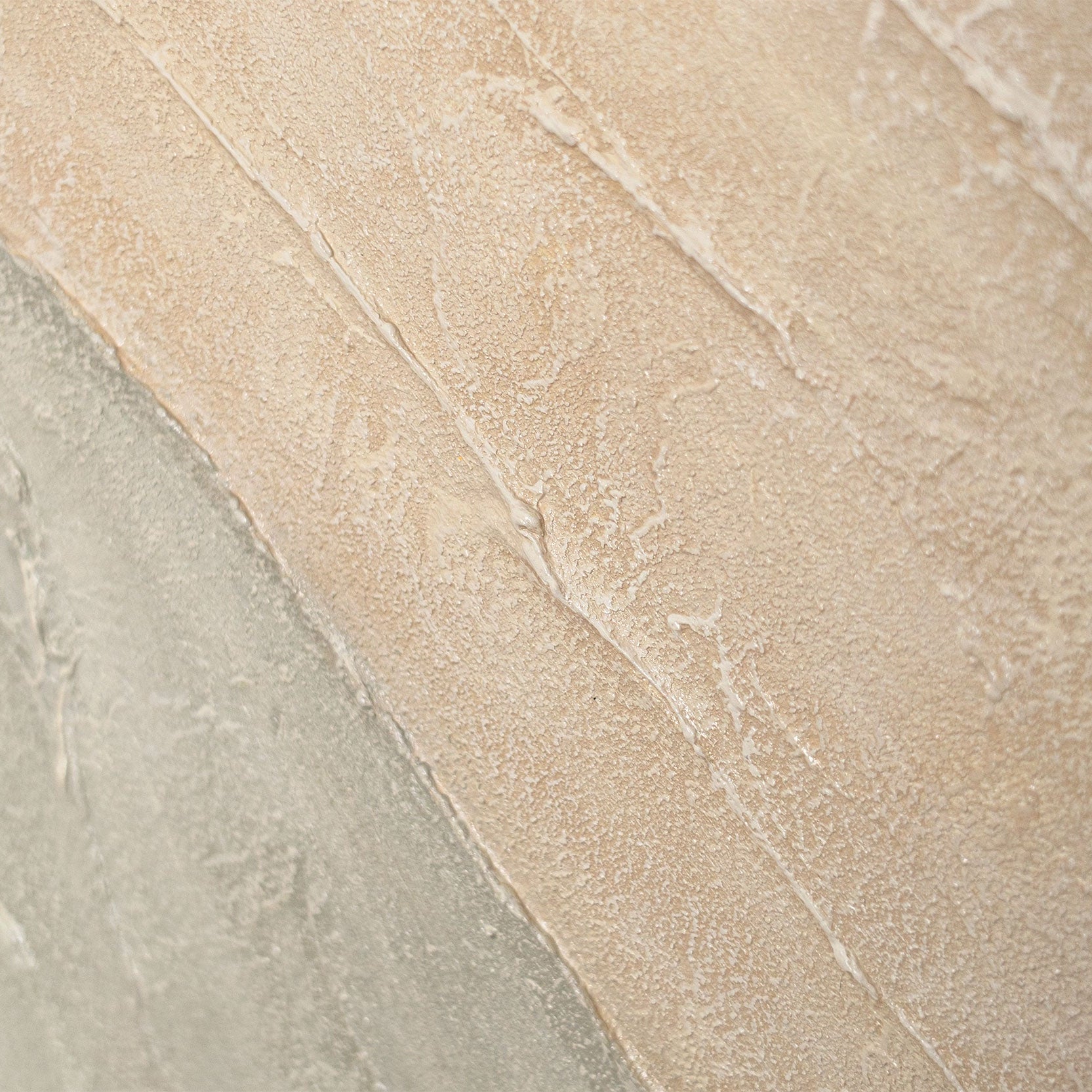 « Traces de pluie » est une œuvre qui ne raconte pas d'histoire, mais évoque plutôt une sensation. La surface semble dessinée par l'eau : des lignes douces, des transitions irrégulières et une palette de couleurs claires et subtilement nuancées, composée de beige, de crème et de gris doux.