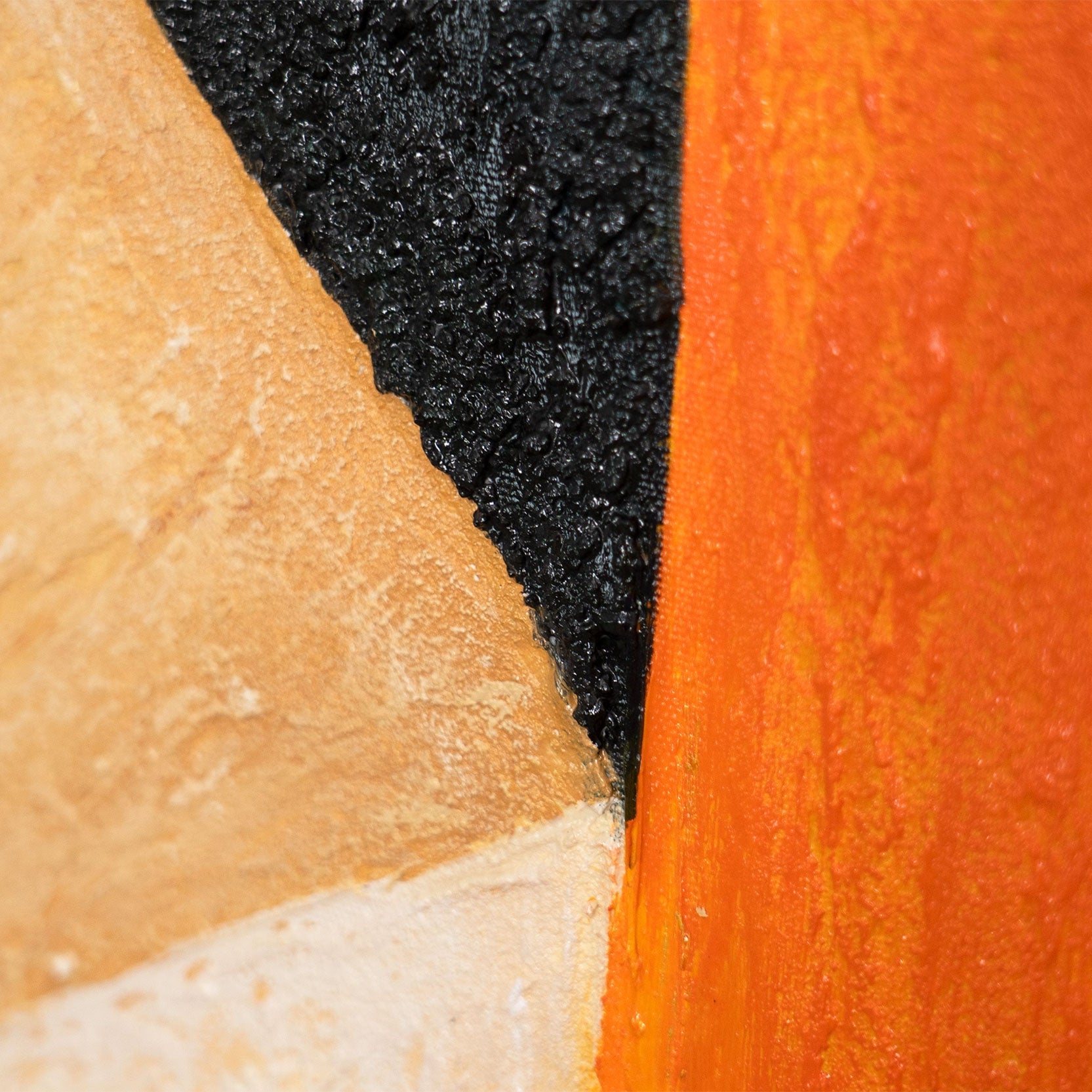 « Ordre et Mouvement » présente une composition géométrique claire, jouant sur les contrastes de formes et de lignes. Des tons chauds d'orange et de beige côtoient des bleus et des verts profonds, créant une impression d'ensemble à la fois dynamique et harmonieuse. Les coups de pinceau apparents confèrent à l'œuvre profondeur et une surface vibrante.