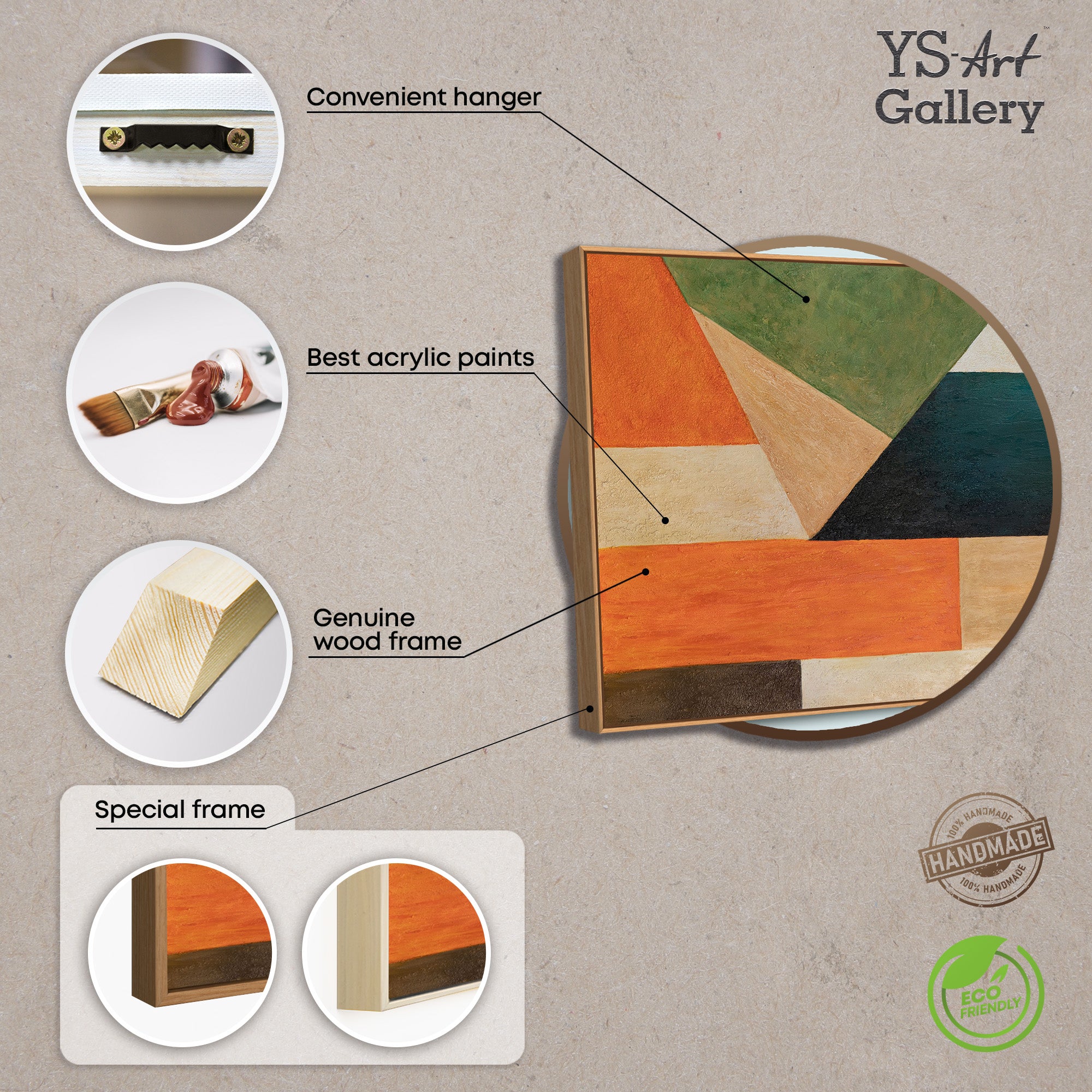 Cette œuvre peinte à la main est idéale comme décoration murale moderne pour divers intérieurs. Son langage visuel épuré et sa palette de couleurs équilibrée permettent de multiples combinaisons, servant à la fois de point focal apaisant et d'élément structurant.