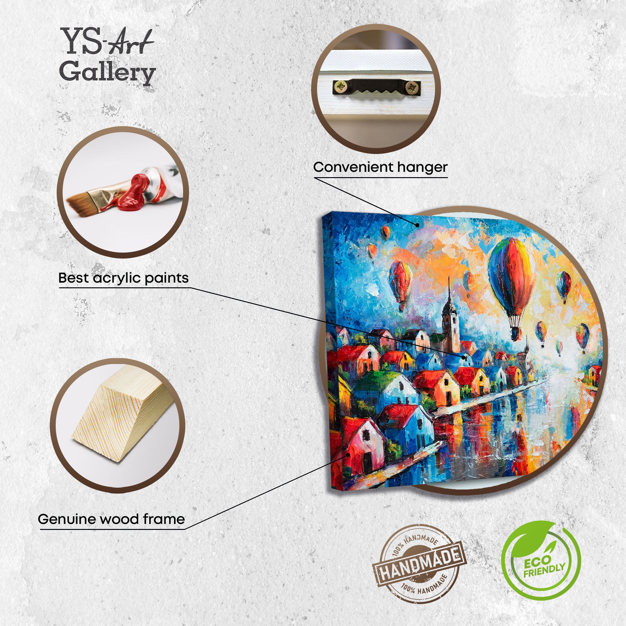 Erfahrene Künstler der YS Art Gallery verwenden umweltfreundliche, professionelle Acrylfarben auf hochwertigem Natur‑Leinwandstoff, um brillante und langlebige Ergebnisse zu erzielen. Diese moderne Wanddeko Wohnzimmer passt perfekt über Sofa oder Kommode und bringt künstlerische Leichtigkeit in jeden Raum.