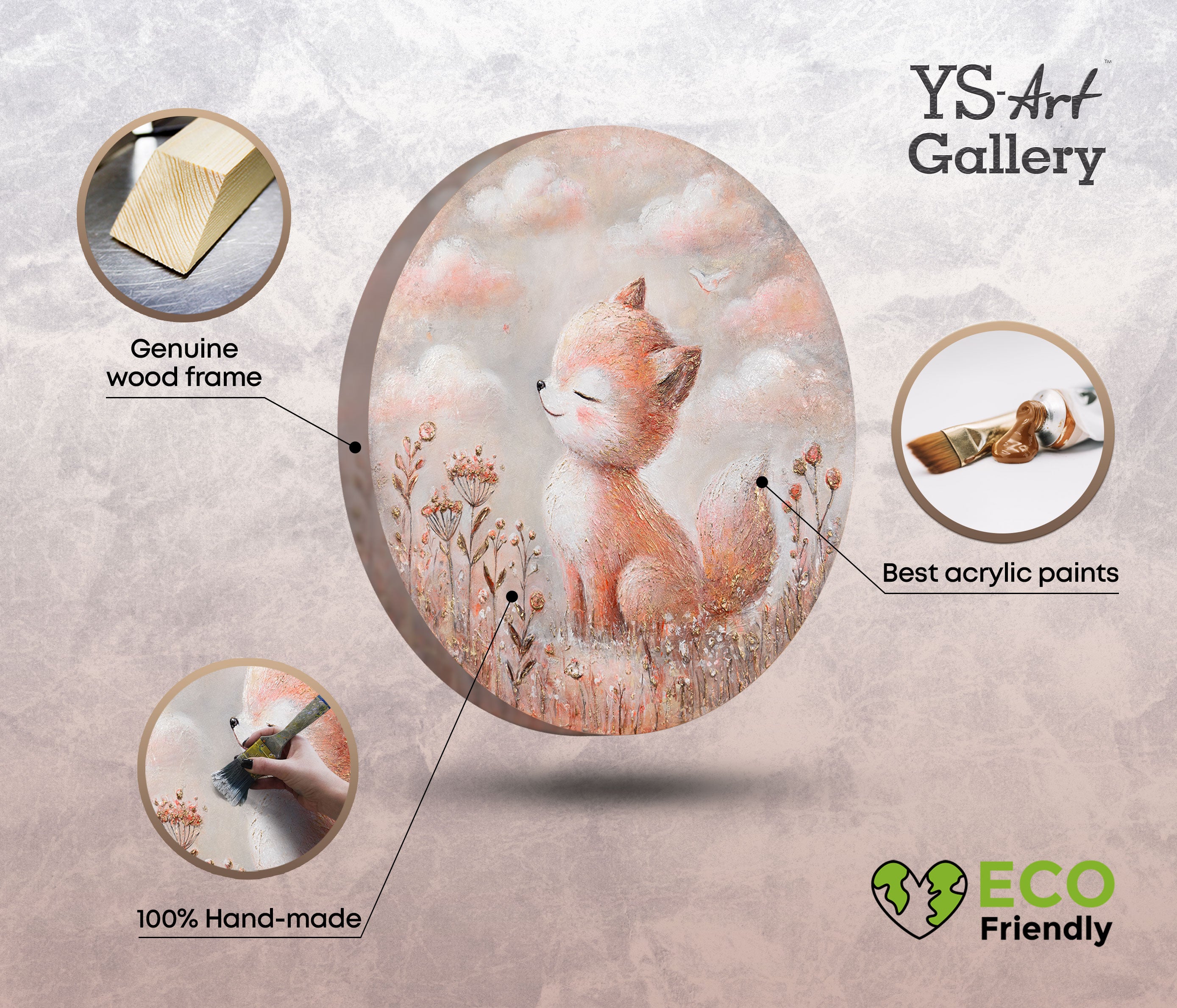 • eco acrylbild fuchs rund, tierbilder kinderzimmer, leinwandbild handgemalt mit holzrahmen