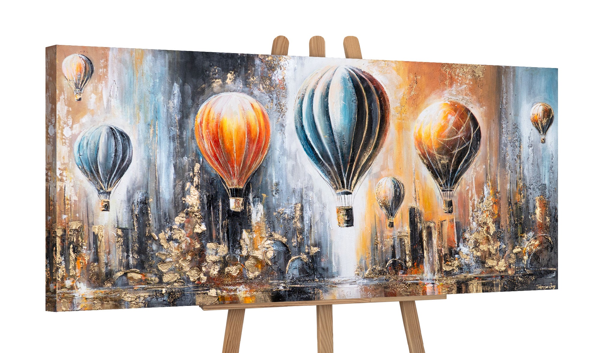 • Detail Acrylbild Heißluftballons mit goldenen Akzenten