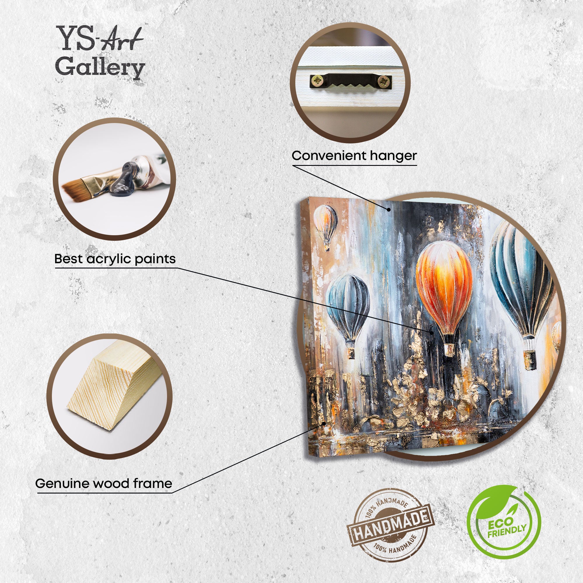 • Detail Acrylbild mit Heißluftballons und Leinwandstruktur
