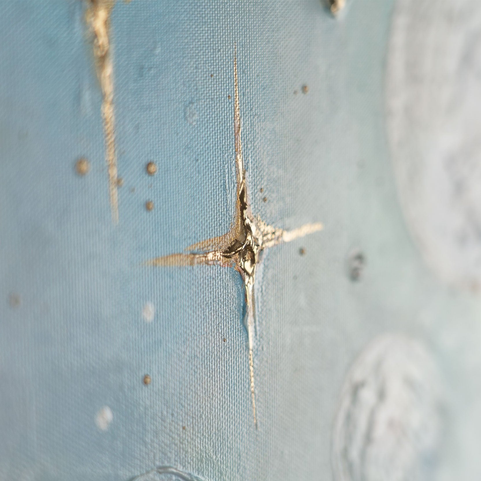 • gemälde auf leinwand Nahaufnahme von pastellblauem Auto mit Goldakzenten