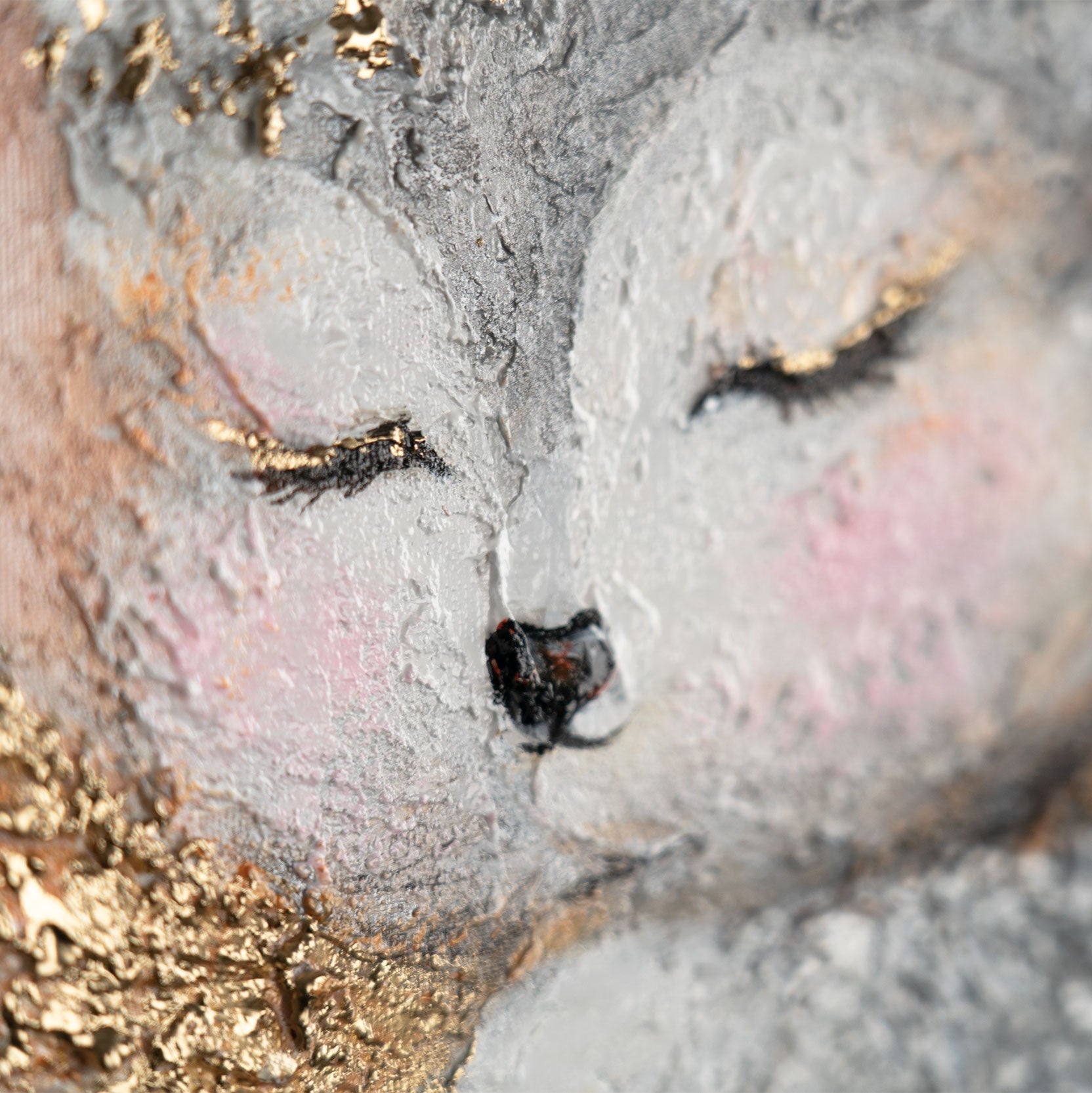 Das dreiteilige Leinwandbild „Verzauberte Welt“ zeigt eine magische Komposition mit zarten, märchenhaften Figuren wie Fuchs, Engel und Schlafender. Die sanfte Farbpalette aus Pastelltönen, kombiniert mit goldenen Akzenten, erzeugt eine verträumte Atmosphäre.