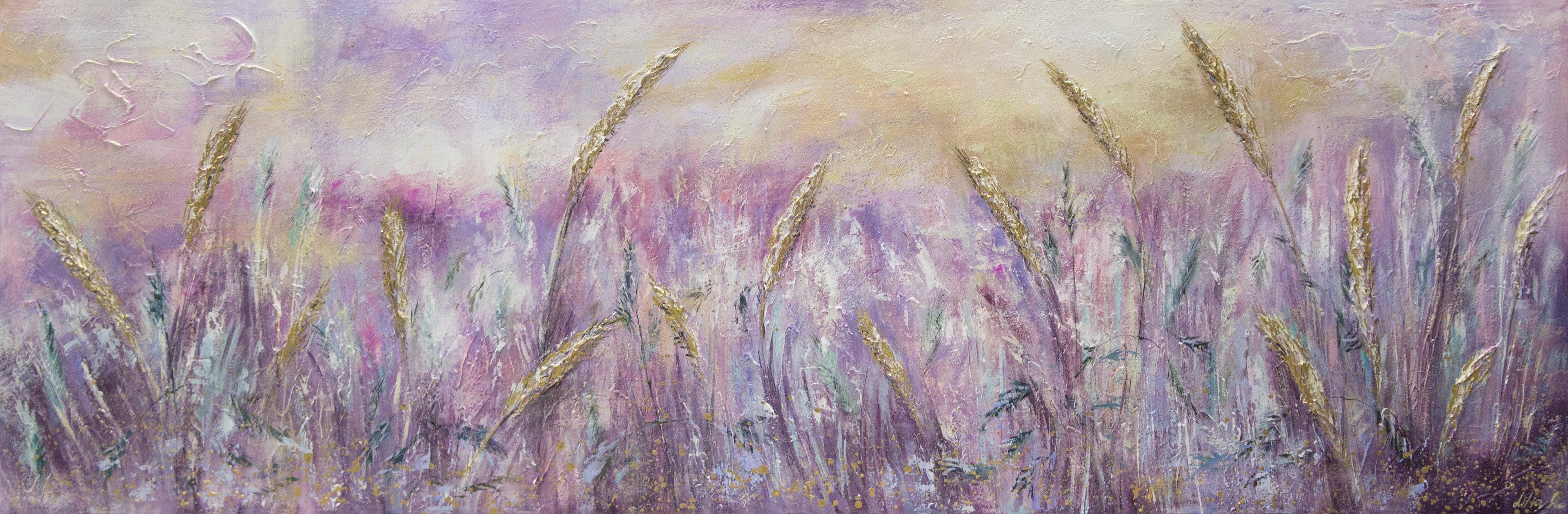 • Handgemalte landschaft malerei "Morgentau" 150x50cm