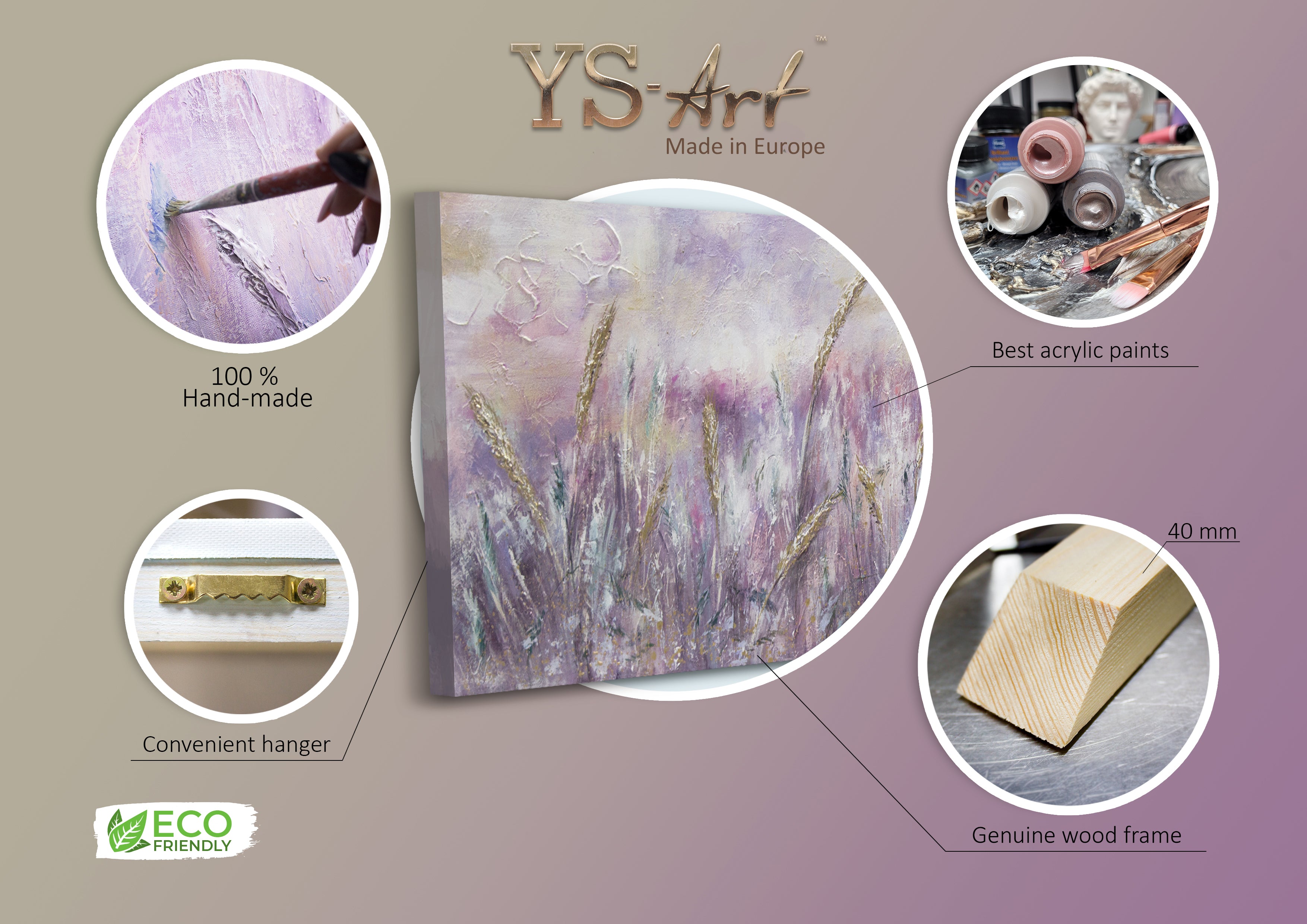 • Materialien: Acryl, Leinwand, Keilrahmen aus Naturholz.