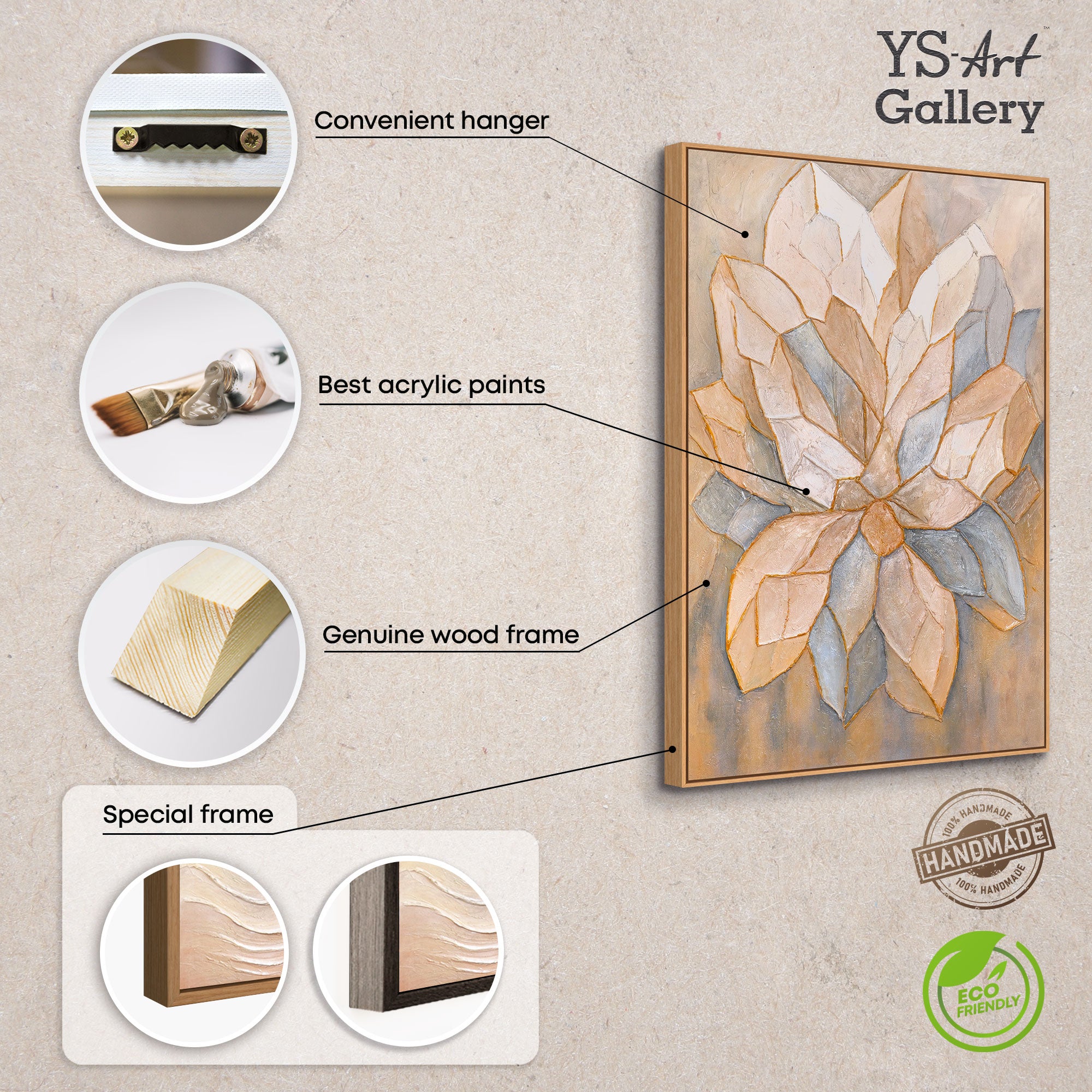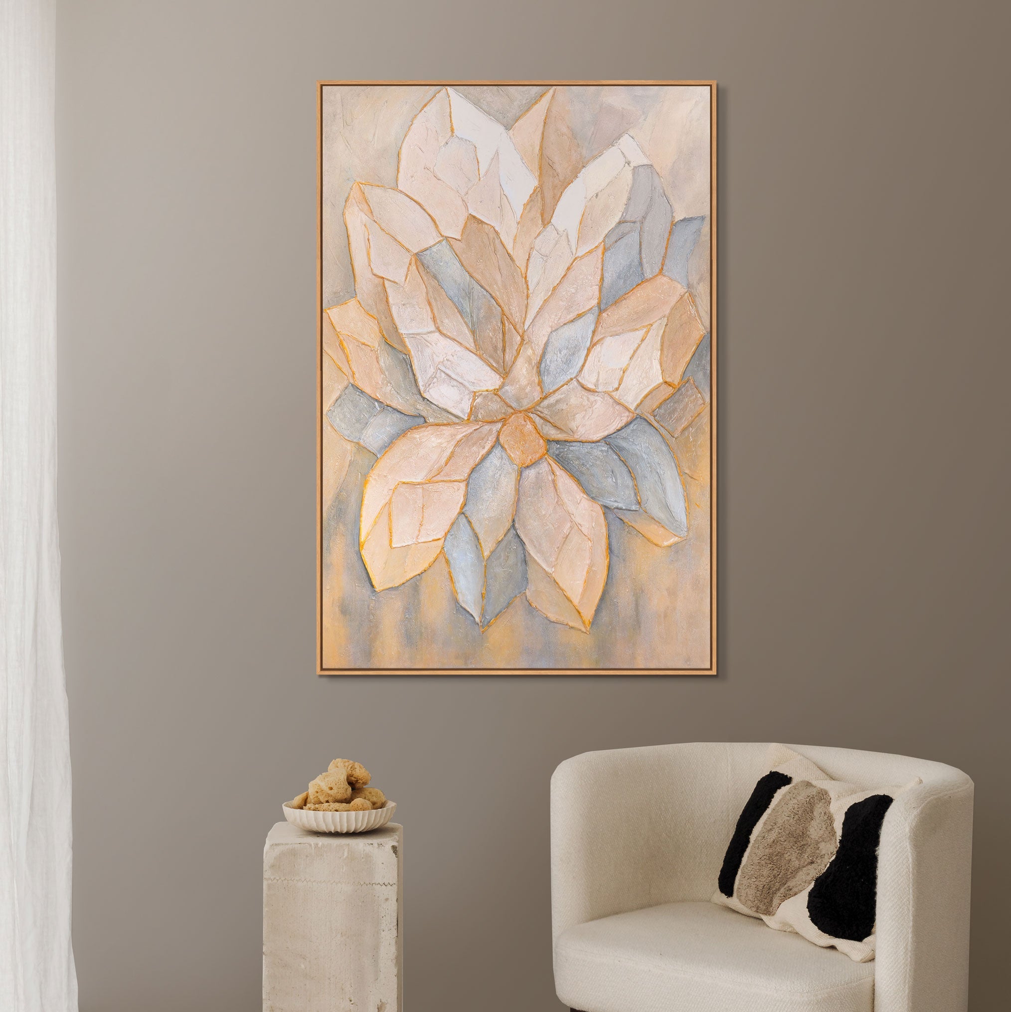 • Peinture acrylique peinte à la main avec cadre « Facettes des pétales » – Art mural floral abstrait