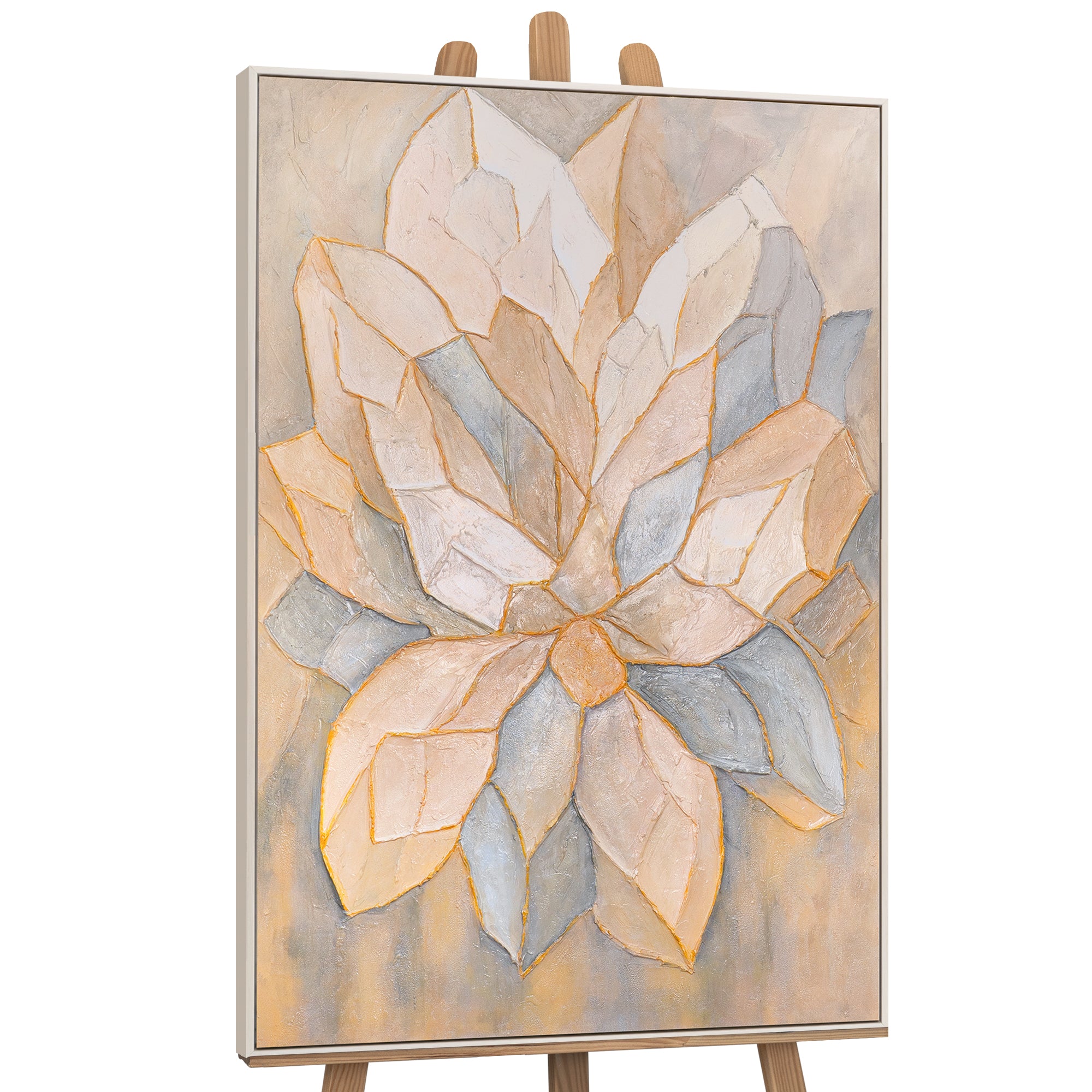 Peinture acrylique peinte à la main avec cadre « Facettes des pétales » – Art mural floral abstrait