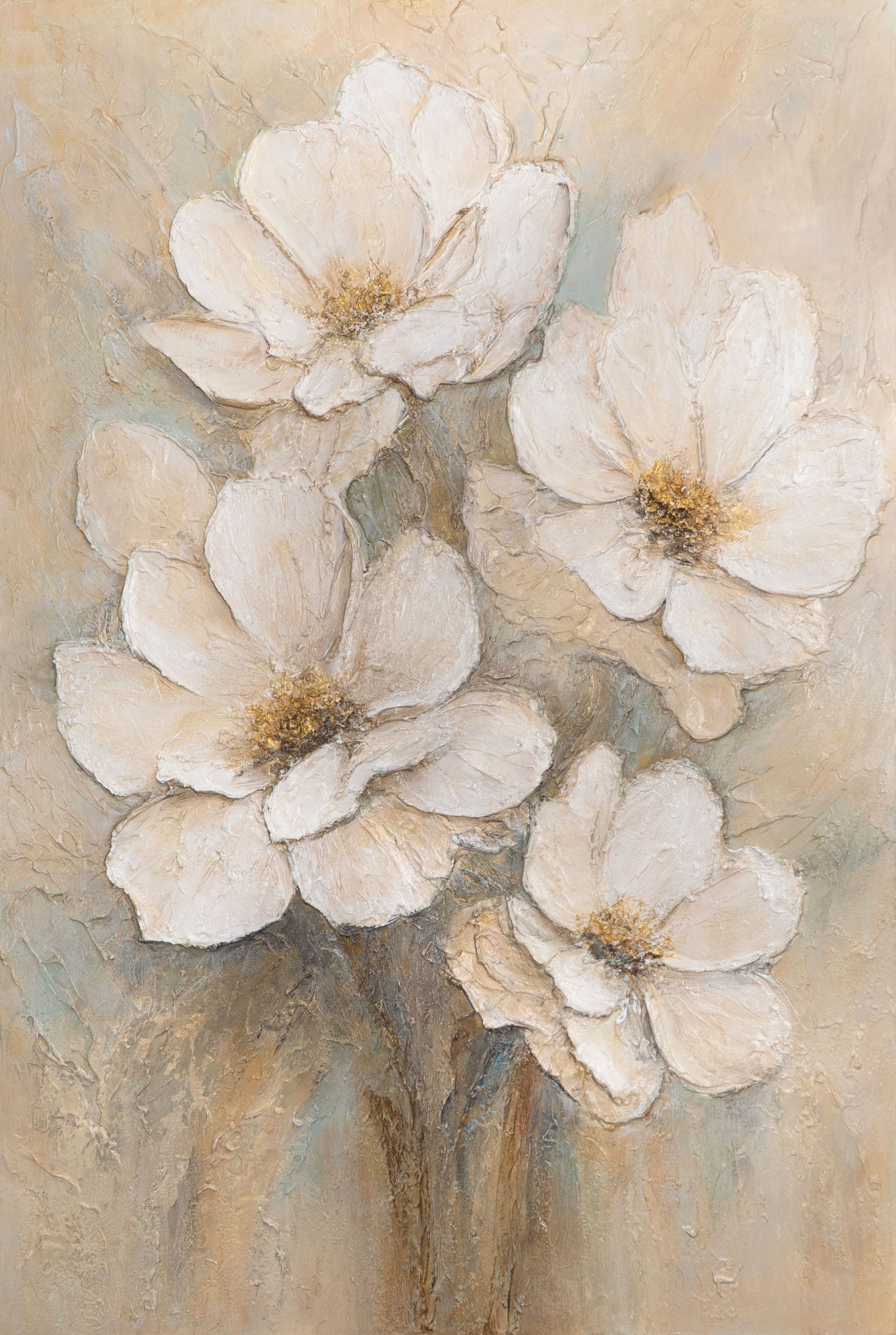 • Handgemalte Blumen Wandkunst beige moderne Leinwand