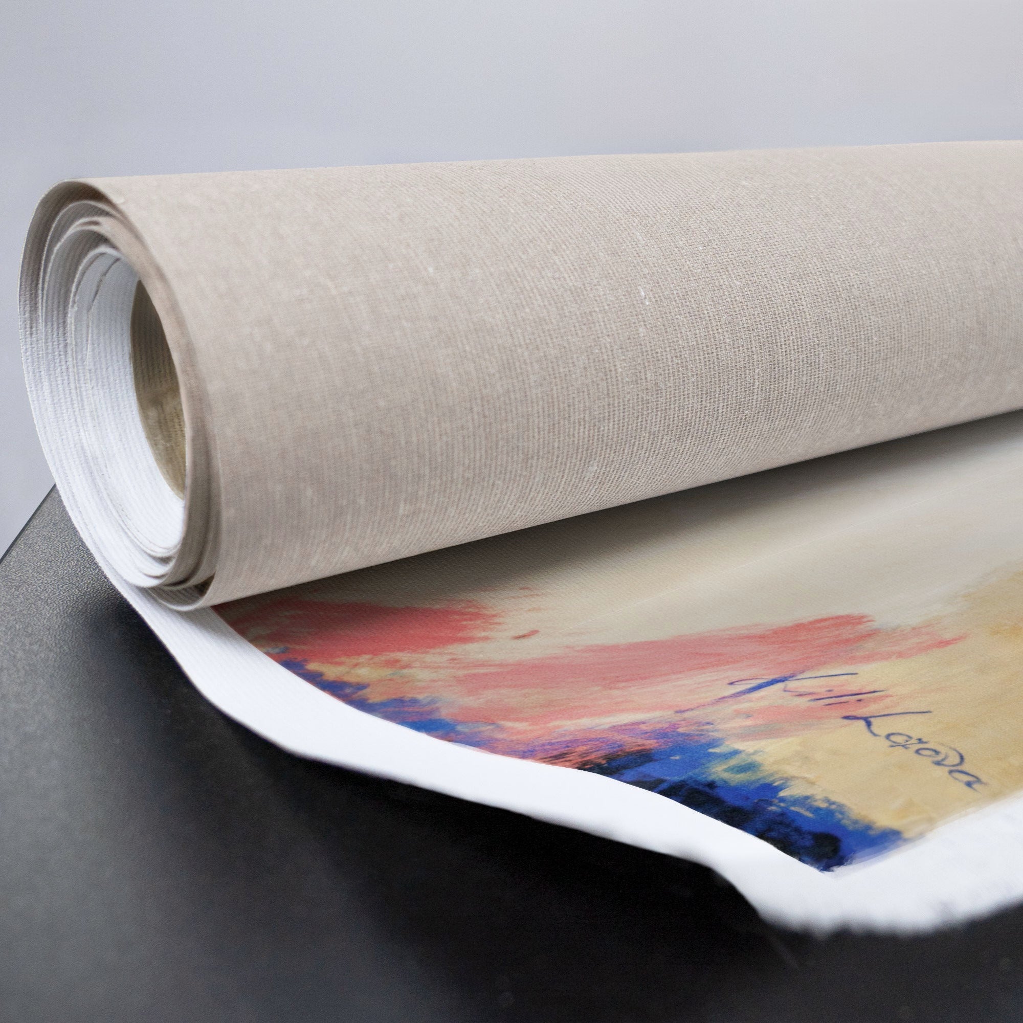 • Aufgerollte Leinwand handgemalte Acrylmalerei Detailansicht