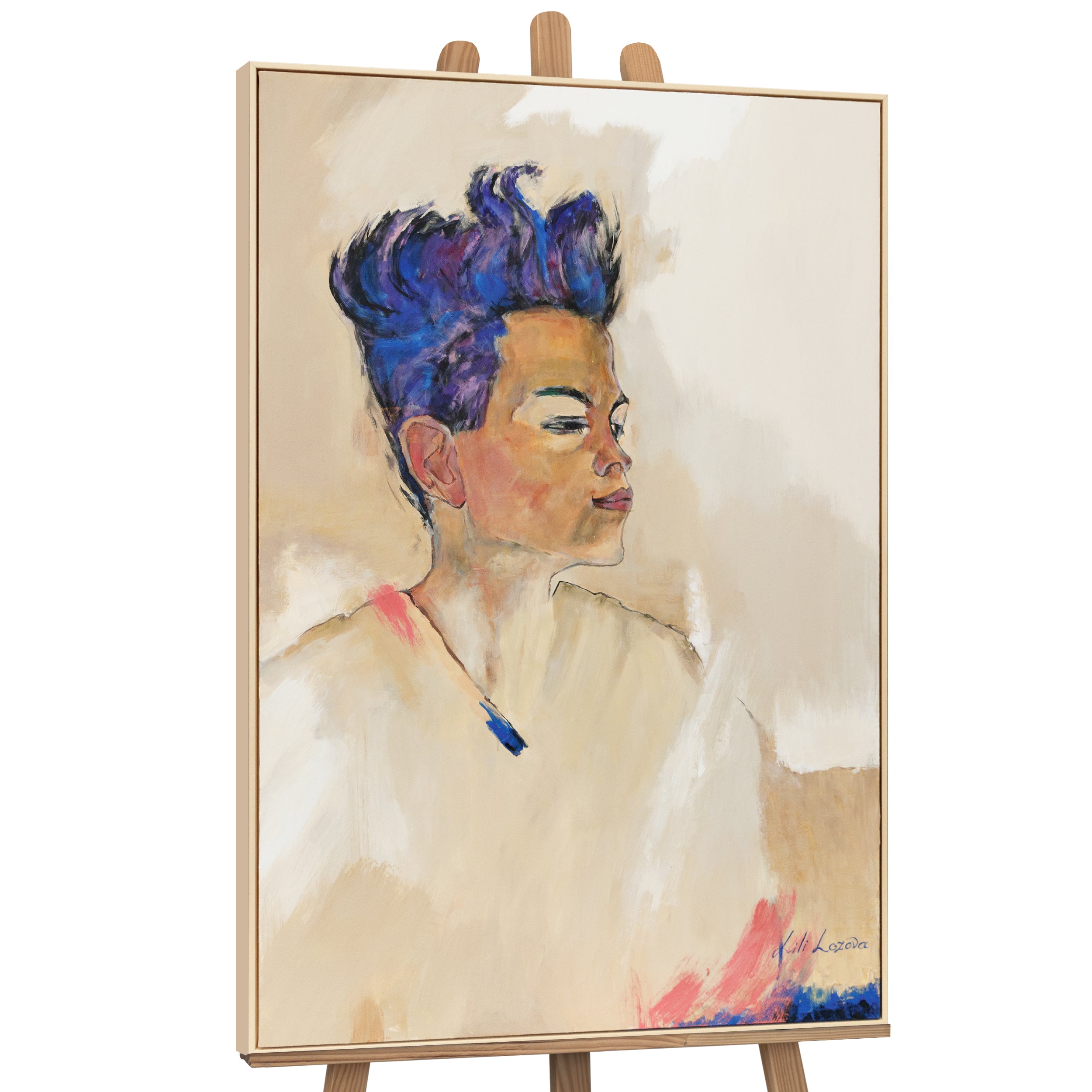 • Acrylgemälde in Porträtstil mit lila Haarakzenten