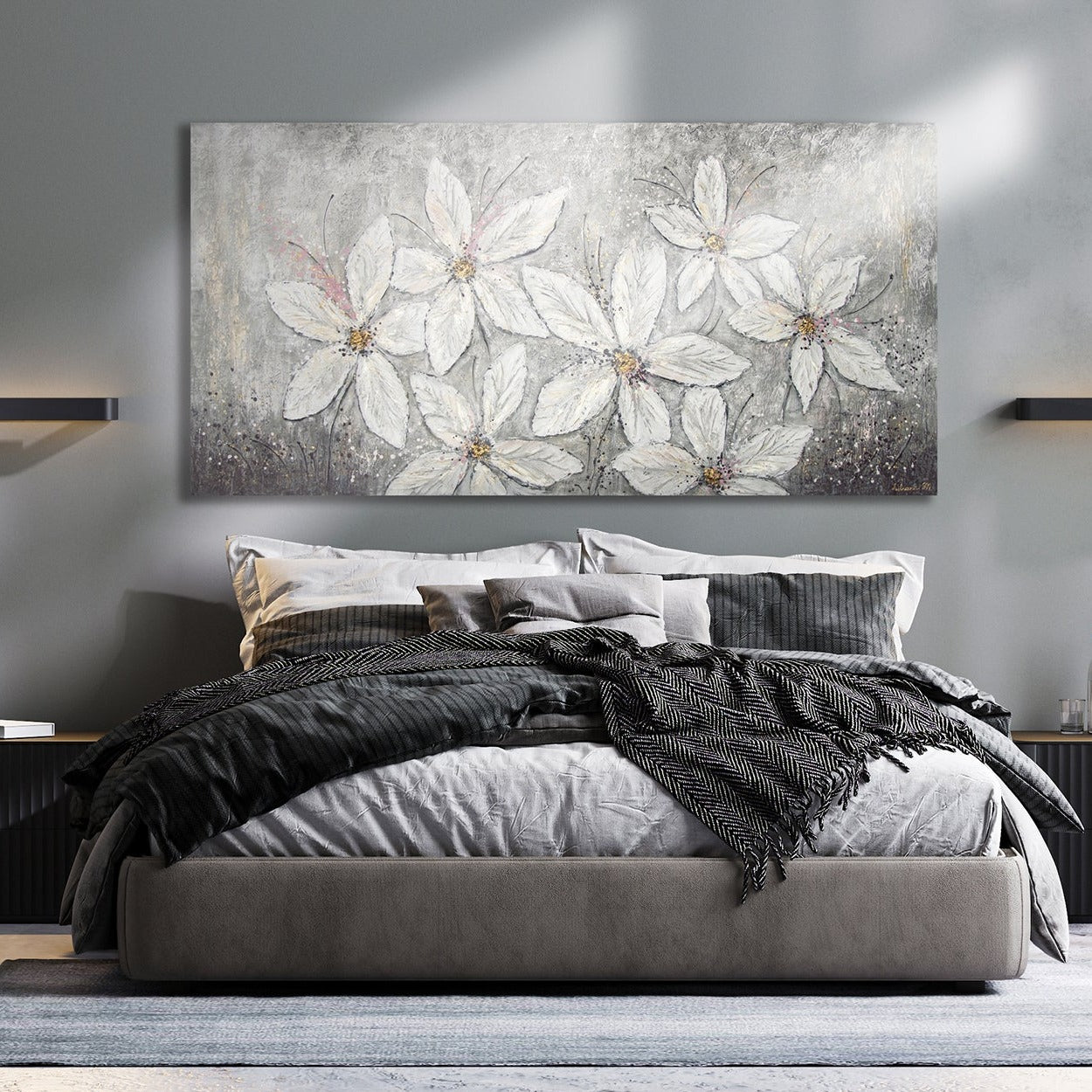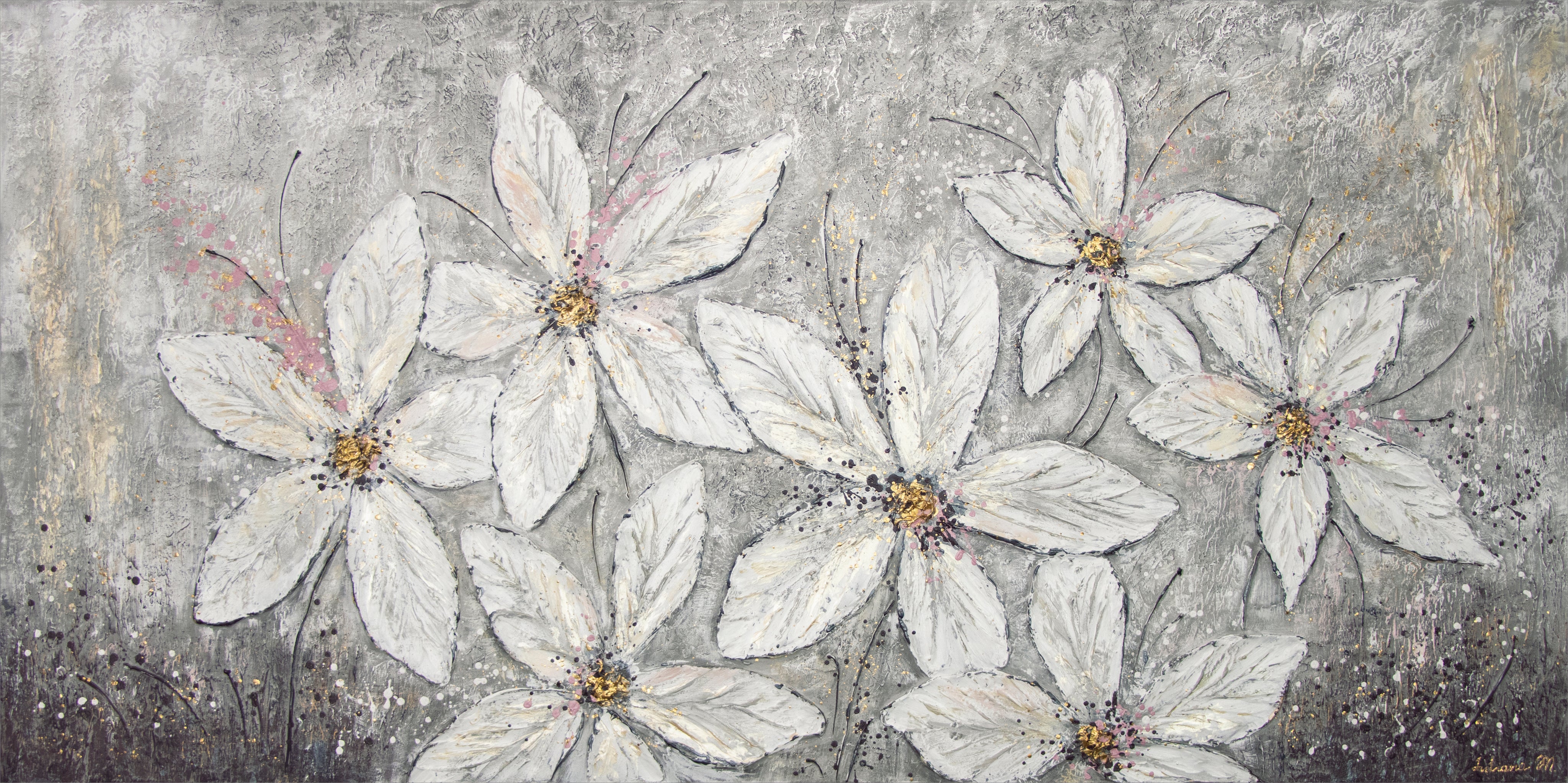 Zarte, große weiße Blumen erinnern Sie an warme Frühlings- und Sommertage in den kalten Jahreszeiten. Füllen Sie Ihr zuhause an jedem Tag mit einer positiven Atmosphäre auf. Das Gemälde eignet sich hervorragend fürs Schlafzimmer, Wohnzimmer, Arbeitszimmer oder Küche. Beim Gemälde wurden nur hochwertige Materialien verarbeitet.