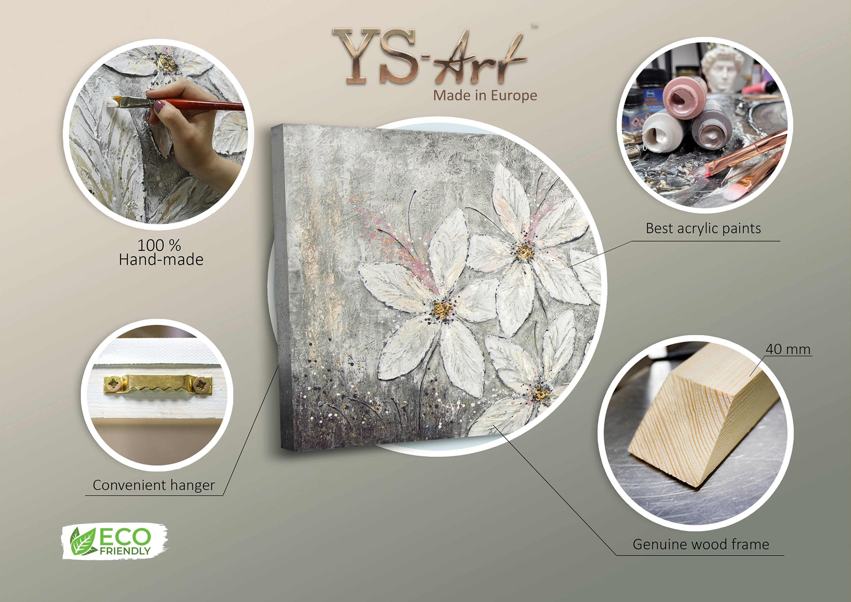 Für dieses Gemälde mit Blumen haben wir hochwertige Materialien verwendet, die den europäischen Standards entsprechen. Sie erhalten nicht nur ein Gemälde, sondern ein exklusives und einzigartiges Kunstwerk, das von einem talentierten Künstler gemalt wurde.