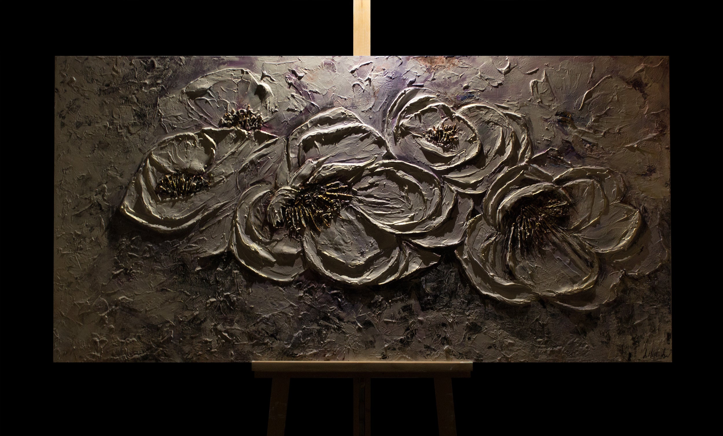 Dieses wunderschöne Acrylgemälde zeigt eine eindrucksvolle Darstellung von weißen Blüten in voller Pracht. Die lebendigen Texturen und detailreichen Pinselstriche verleihen den Blumen eine besondere Tiefe und Lebendigkeit. Das Kunstwerk eignet sich ideal als Highlight für jedes moderne Interieur und bringt eine elegante, natürliche Atmosphäre in Ihr Zuhause.