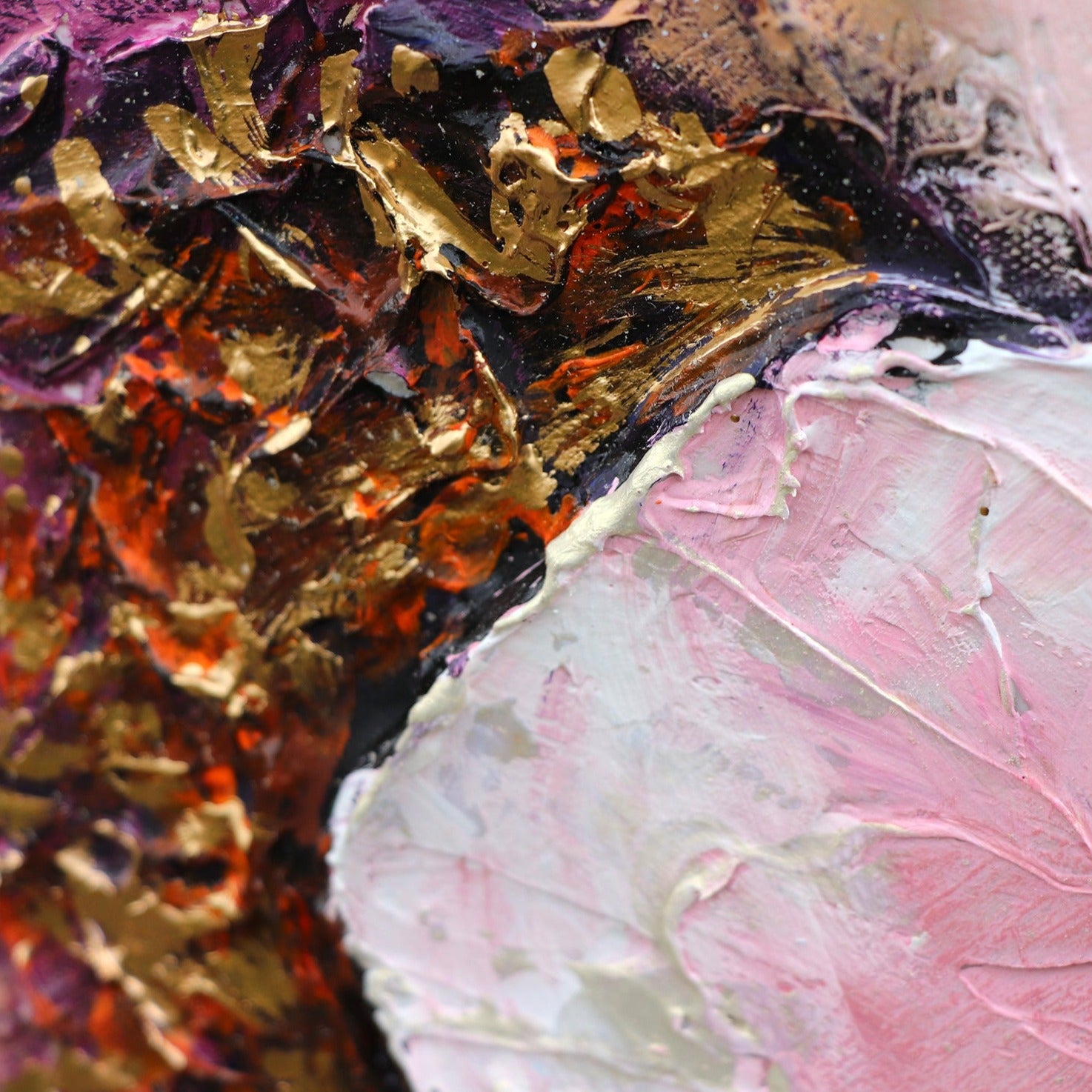 Dieses handgemalte Blumenbild bringt Eleganz und Frische in Ihr Zuhause. Die zarten Pastellfarben und die goldenen Akzente schaffen ein harmonisches Bild. Jedes Kunstwerk ist vollständig handgefertigt und somit ein einzigartiges Unikat. Genießen Sie unsere kostenlose Lieferung direkt zu Ihnen nach Hause.