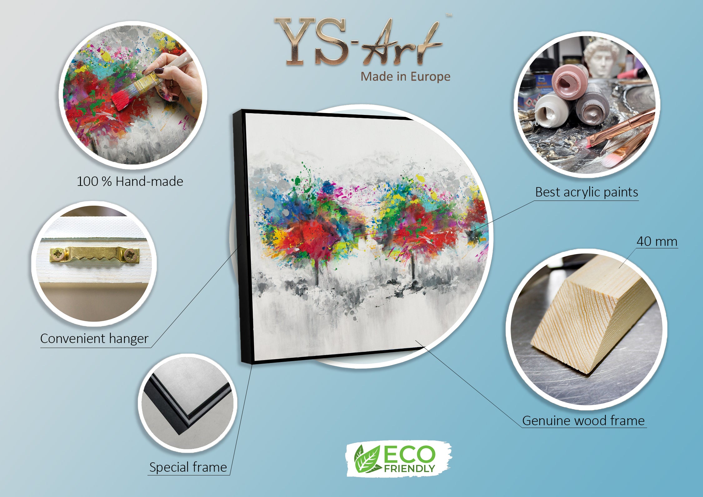 • Machen Sie Ihr Haus, Ihre Wohnung oder Ihr Büro zu einem wirklich einzigartigen, individuellen Interieur, das Ihnen gehört und niemandem sonst. Aber wie? Die handgefertigten Gemälde von YS-ART sind ein exklusives Werk und die Kunstfertigkeit des Künstlers in jedem Detail. Sie verkörpern Inspiration und positive Emotionen in jedem Strich, in ihrem Farbenspiel und der Vielschichtigkeit der Geschichte. Dies ist zeitgenössische Kunst für diejenigen, die etwas wirklich mehr "sprechen" als nur eine einfache Wanddekoration suchen.