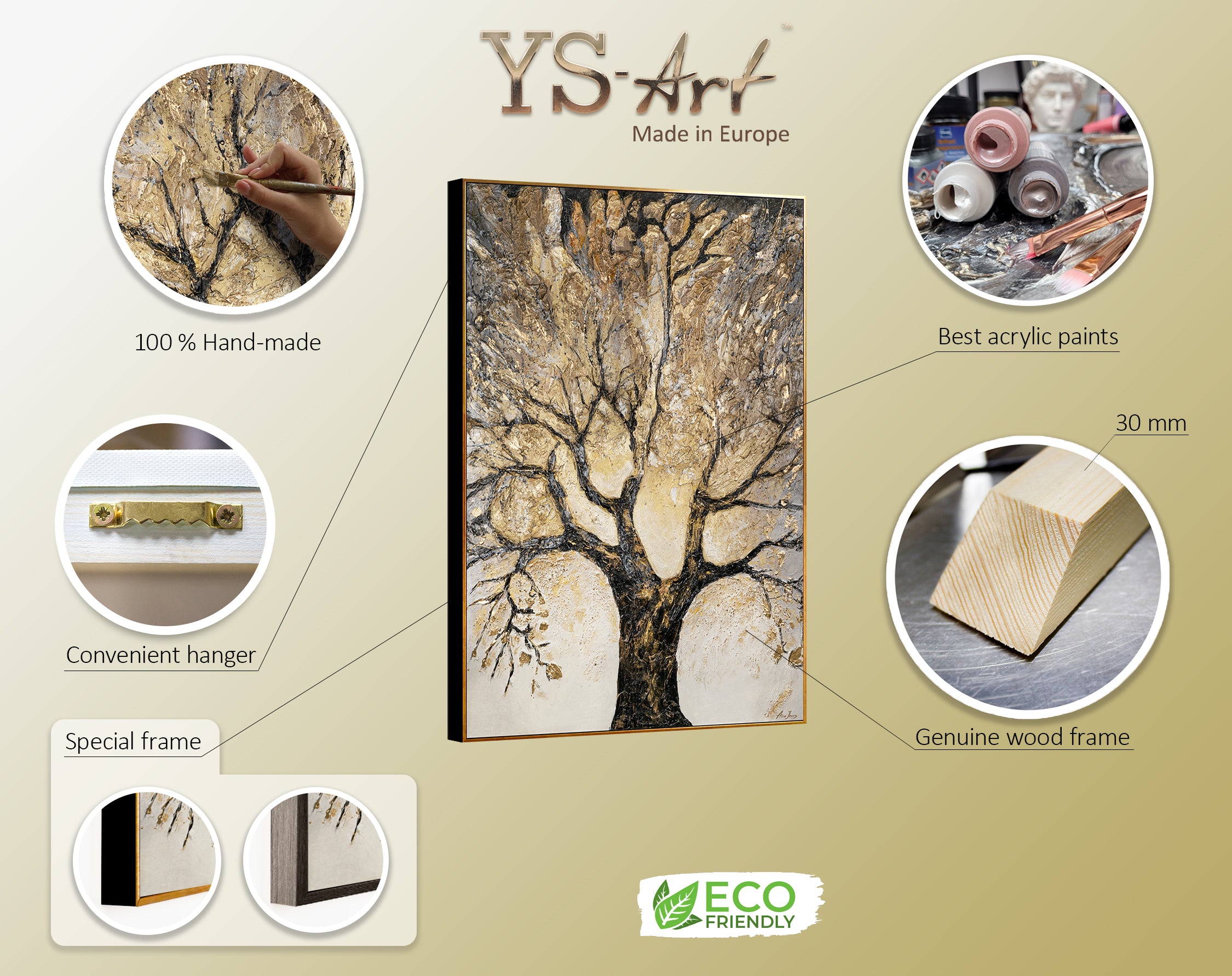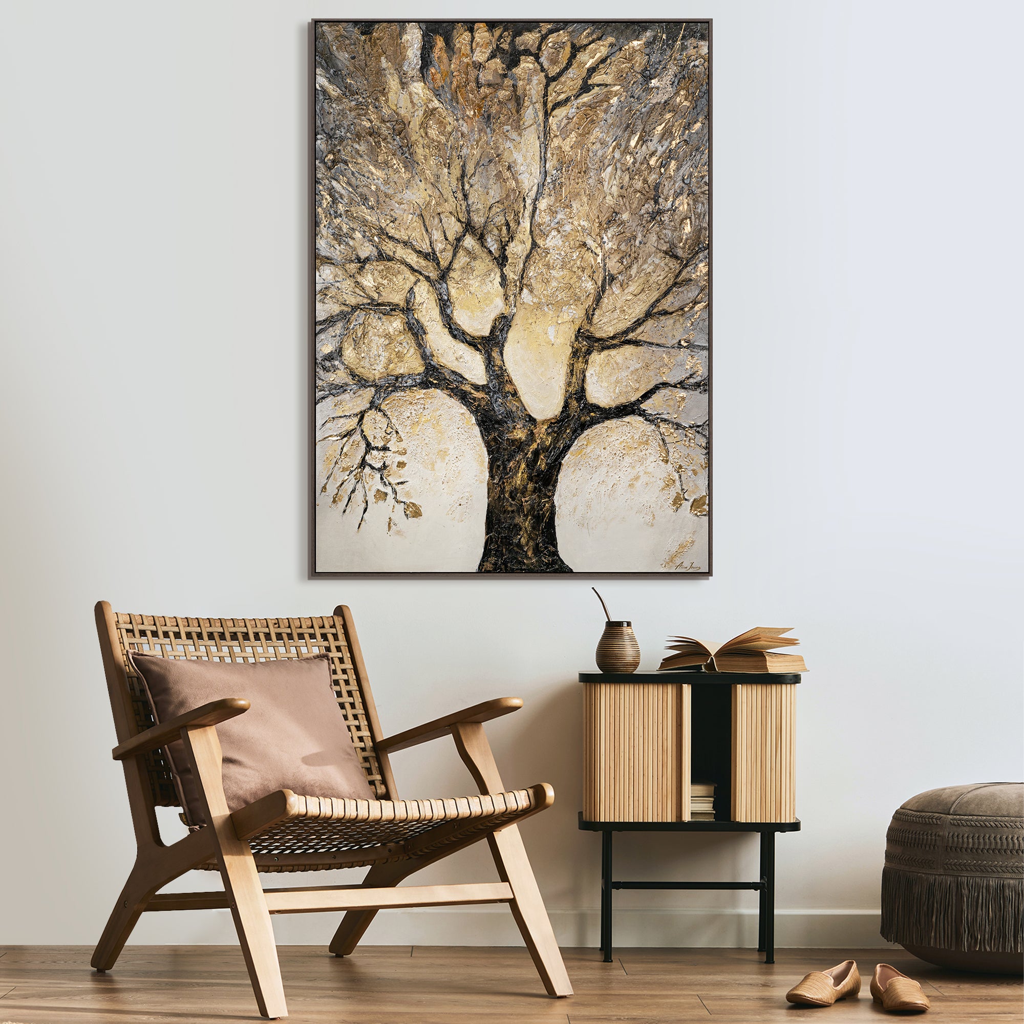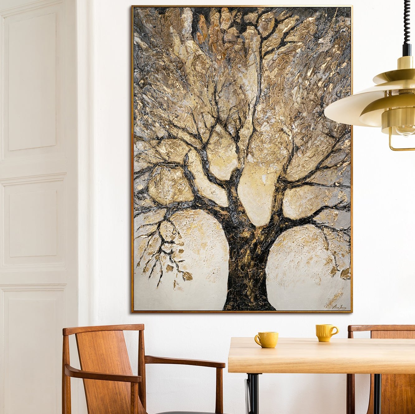 • Wanddeko Handgemaltes modernes Kunstwerk auf Leinwand mit Rahmen Baum des Reichtums und des Wohlstands