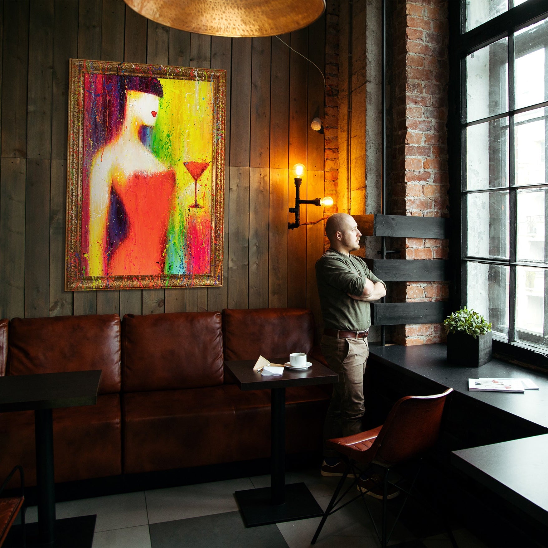 • Abstrakte Gemälde Leinwand mit Rahmen Bild abstrakt bunt "Die Frau mit dem Glas"