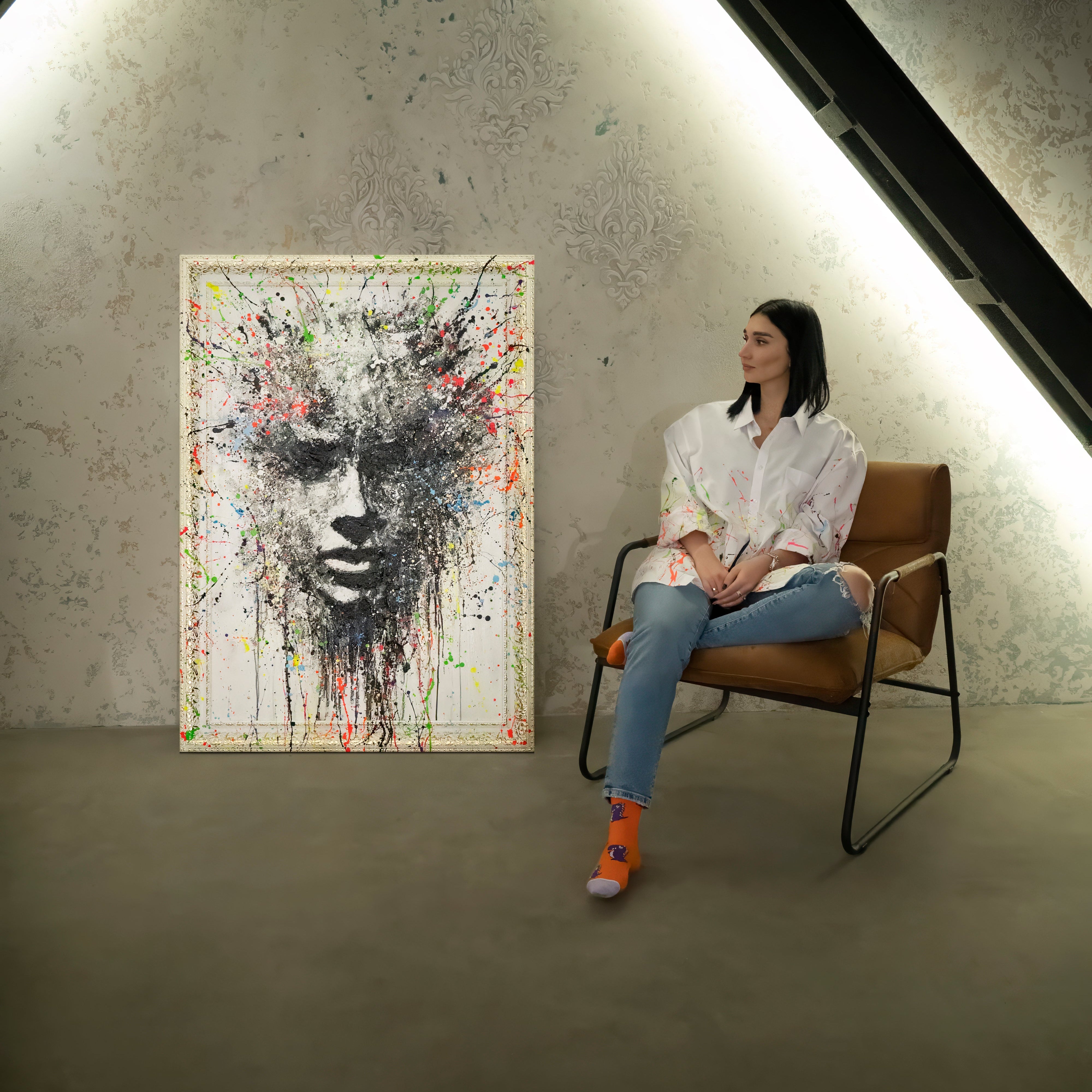 • Acrylkunst Gesicht bunt Spritzer Leinwandbild