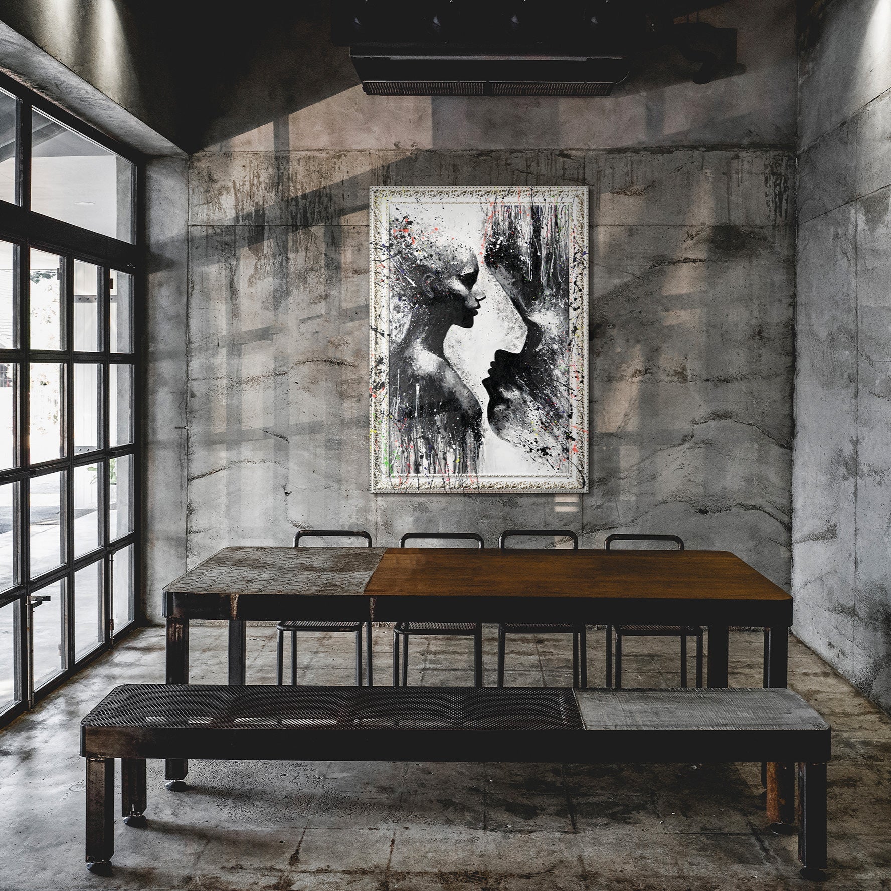 • Wandkunst Schwarz Weiss im Loft Stil