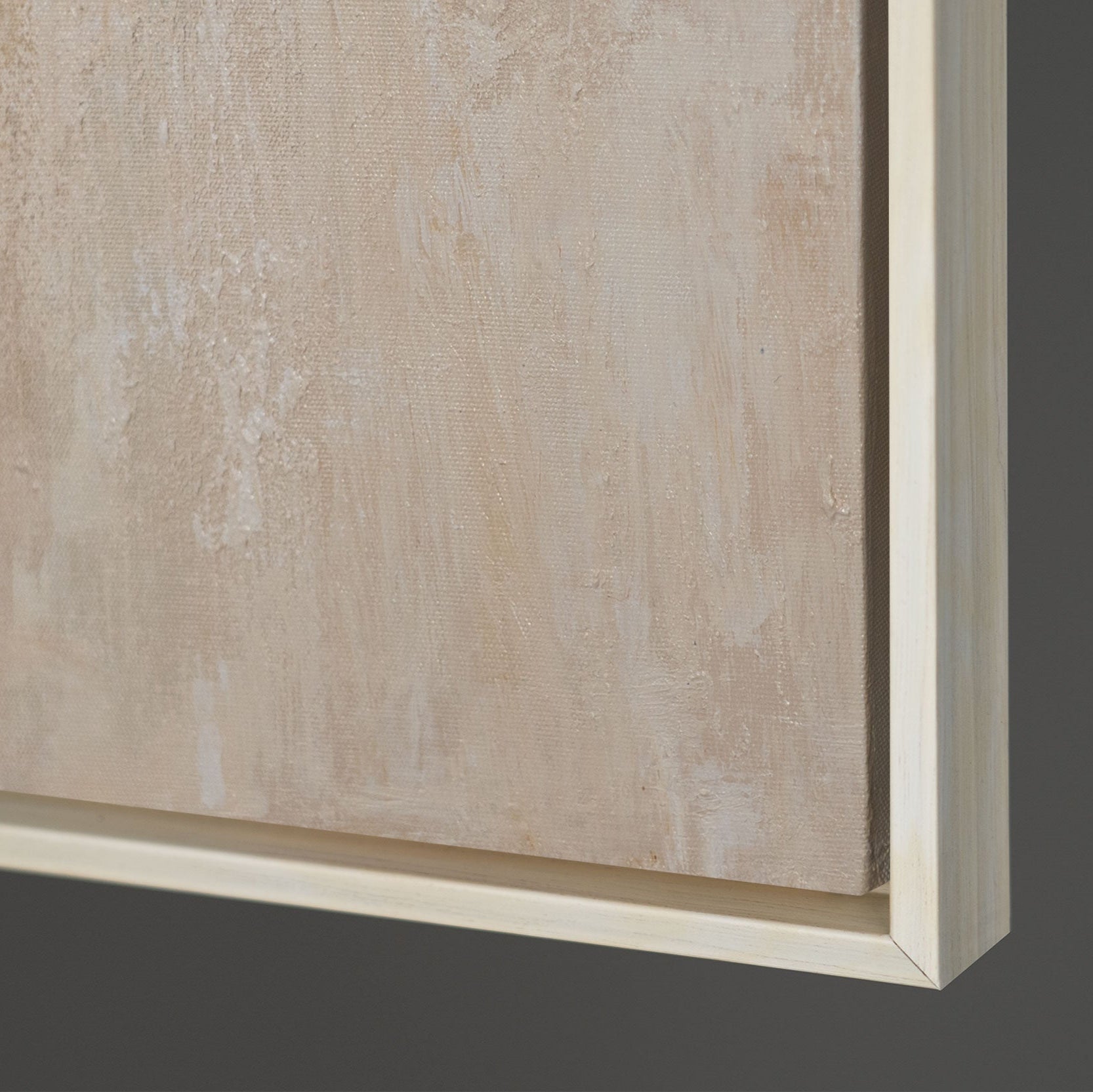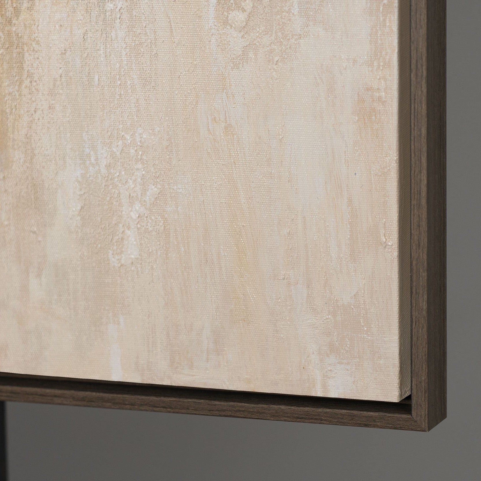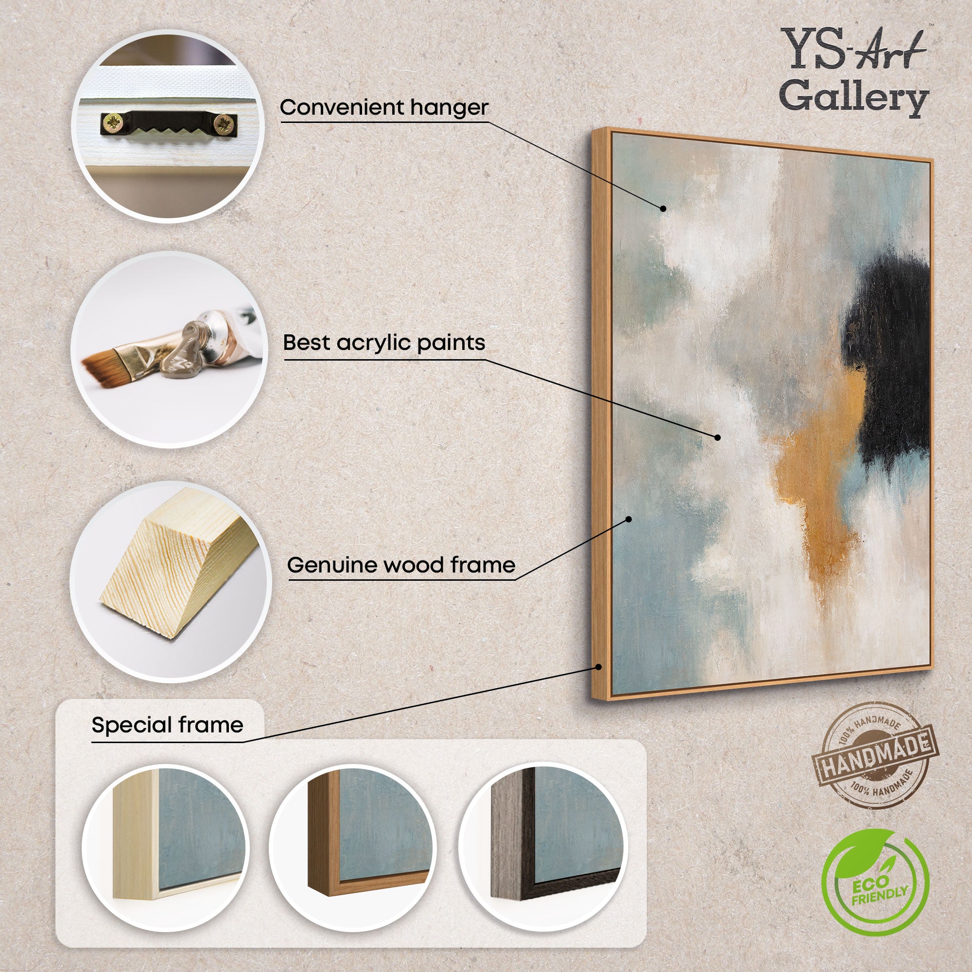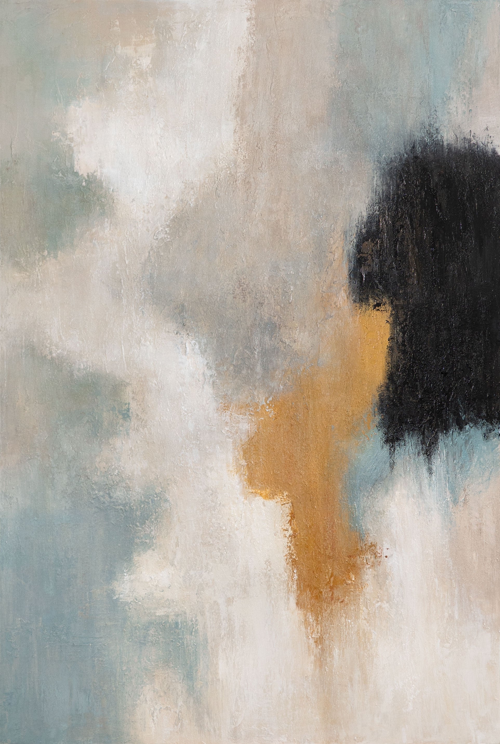 « Transitions de Lumière » est une peinture acrylique moderne, réalisée à la main, qui captive par son harmonieux mélange de beige clair, de bleus doux et de noirs profonds. Des touches dorées chaudes confèrent à l'œuvre un éclat particulier, tandis que sa texture en relief souligne la profondeur et le mouvement.