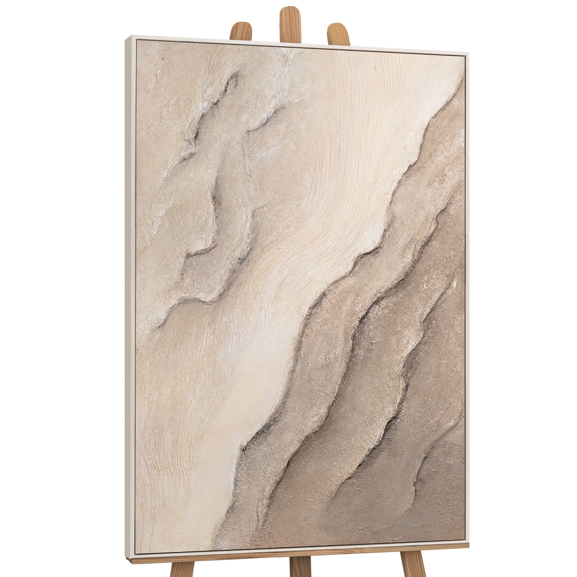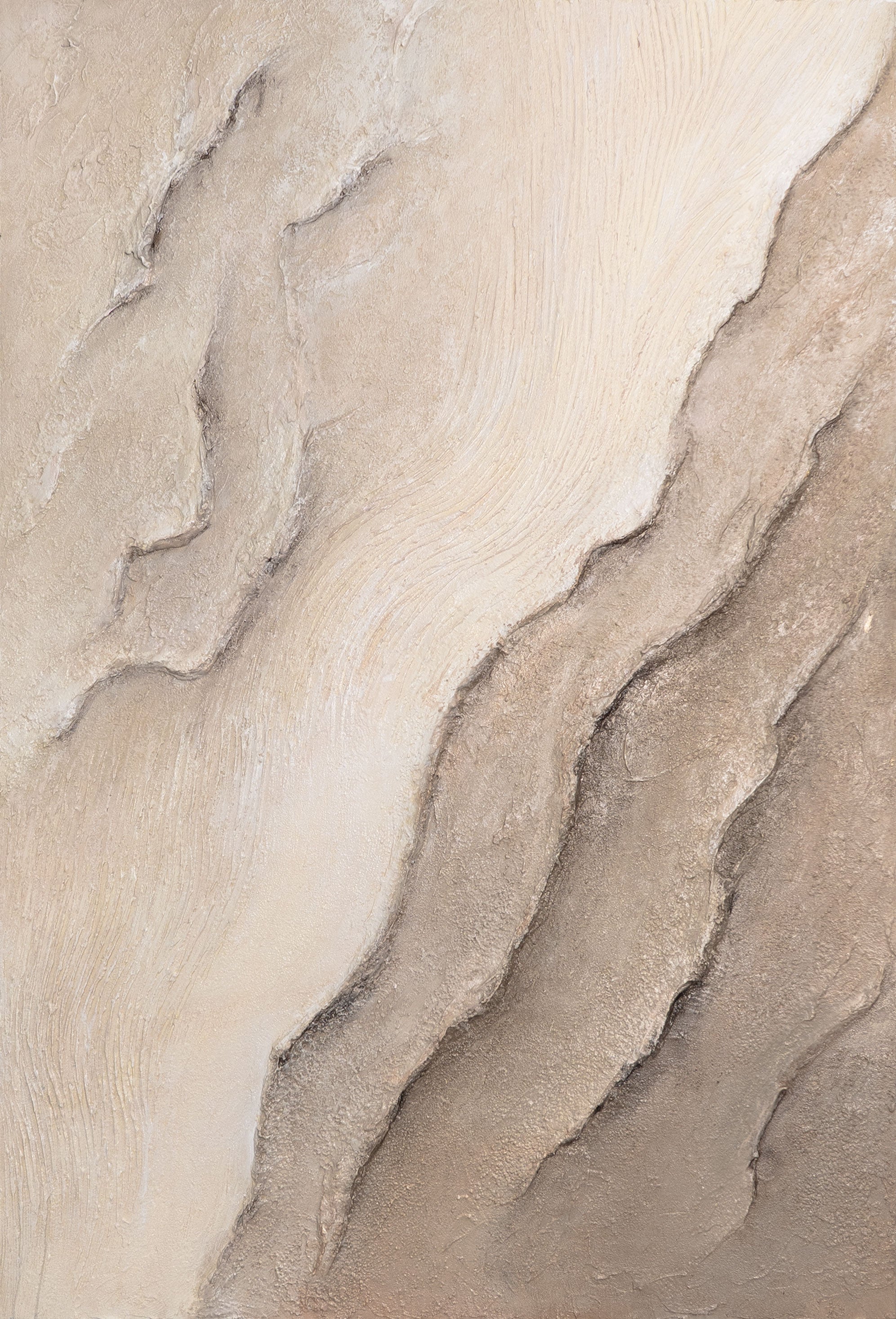 « Traces du Temps » est une peinture acrylique réalisée à la main qui captive par la douceur de ses lignes et l'harmonie de ses textures. La palette de couleurs, composée de beiges, de sable et de tons naturels, évoque la tranquillité et l'intemporalité, tandis que la surface en relief souligne la profondeur et le naturel. Chaque trait fin suggère des strates géologiques, créant un effet organique, presque méditatif.
