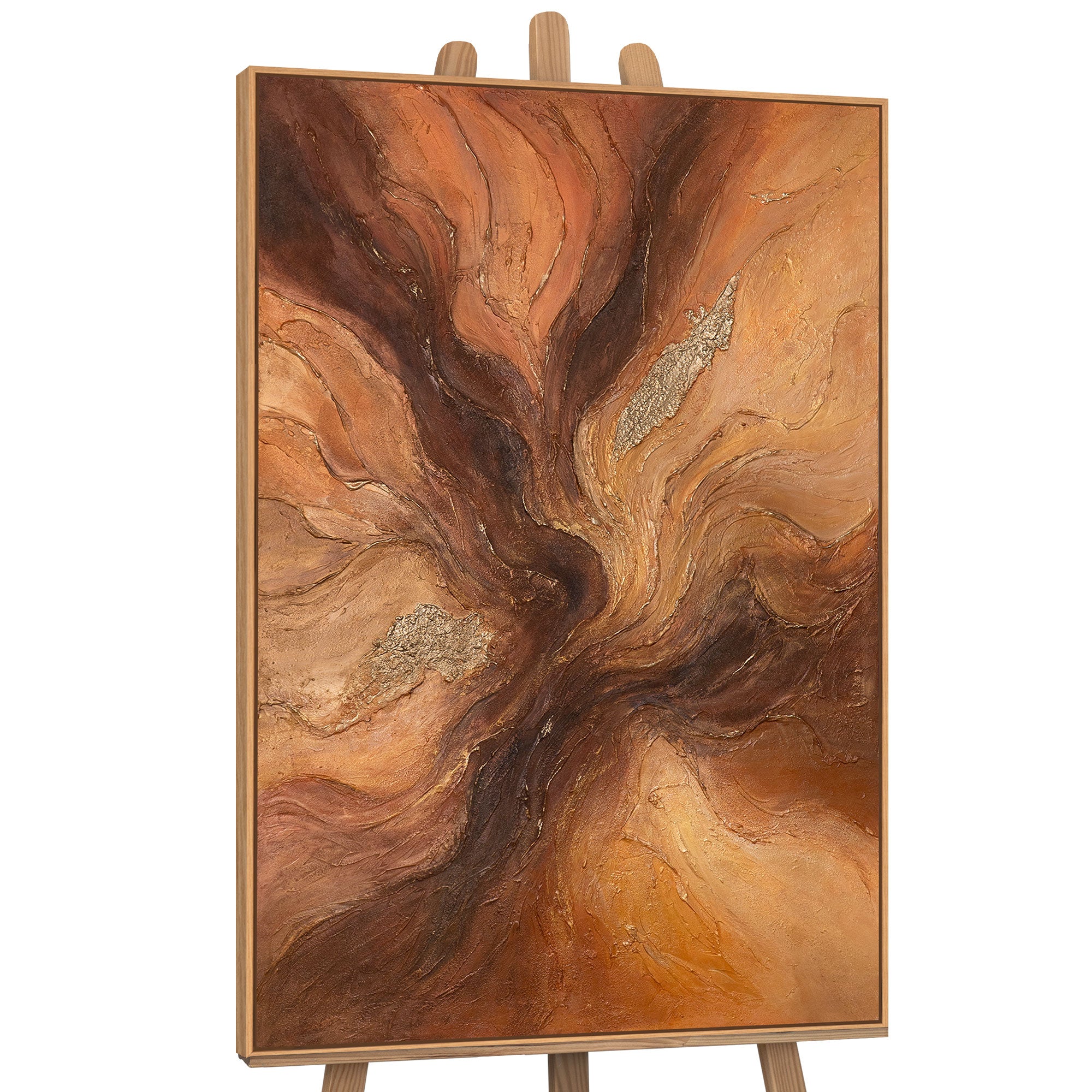 « Ruisseaux d'Ambre » est une peinture acrylique réalisée à la main. Ses formes fluides et ses tons chauds et naturels créent une atmosphère particulière. Les nuances de brun, de cuivre et d'or se fondent en une composition dynamique qui rayonne de profondeur et de vitalité. La texture en relief souligne le mouvement des lignes, faisant de cette œuvre un point focal saisissant.