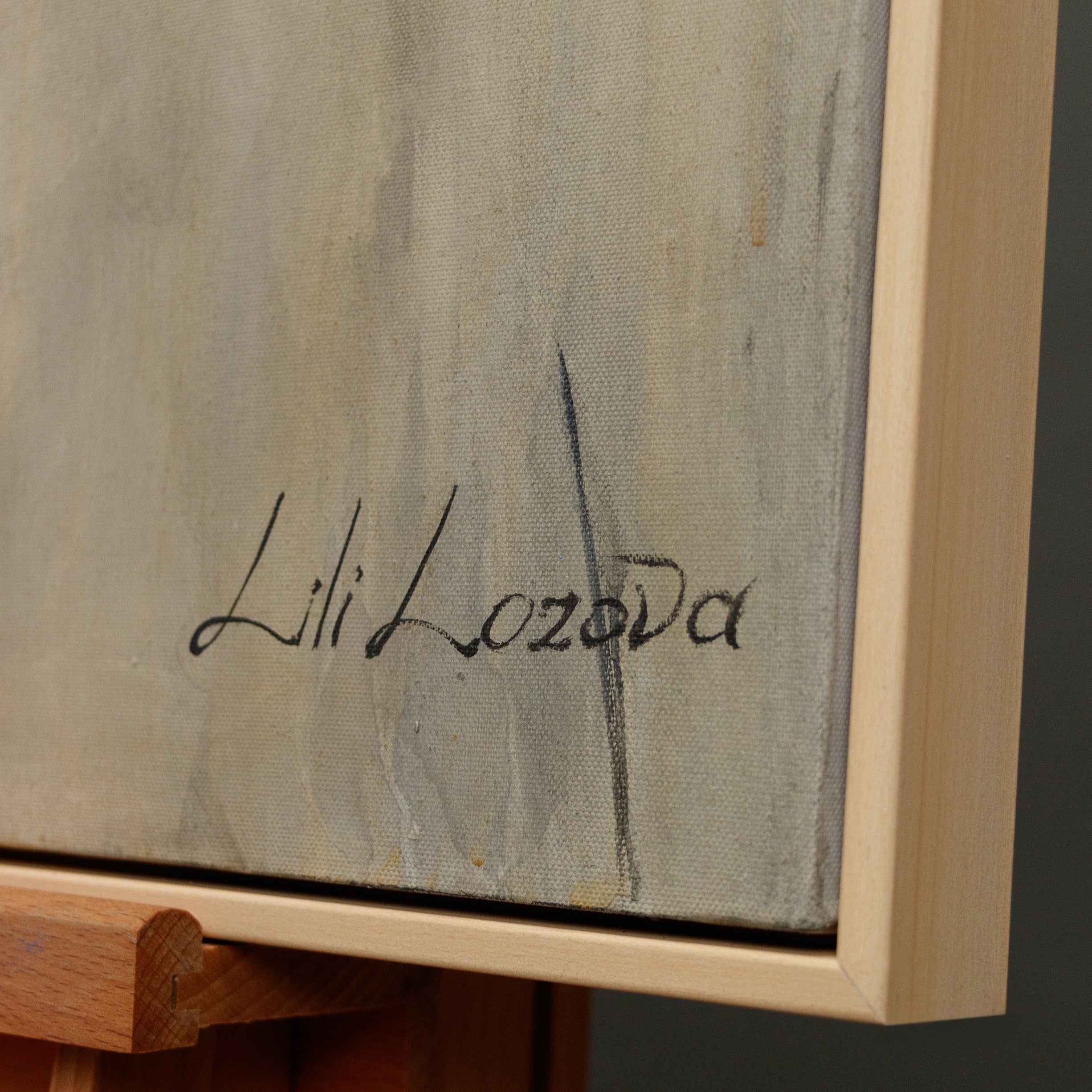 Alle handgemalte bilder auf leinwand dieser Serie werden mit schlichten hellen Rahmen und zwei bereits auf der Rückseite montierten Metallbügeln geliefert.
