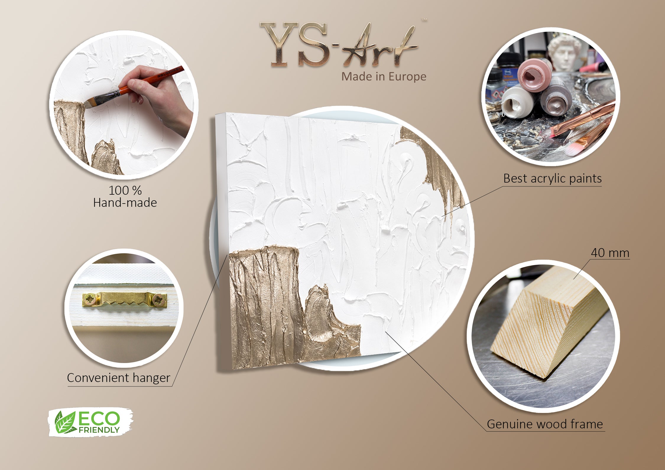 - Materialien: Acryl, Leinwand, Keilrahmen aus Naturholz.