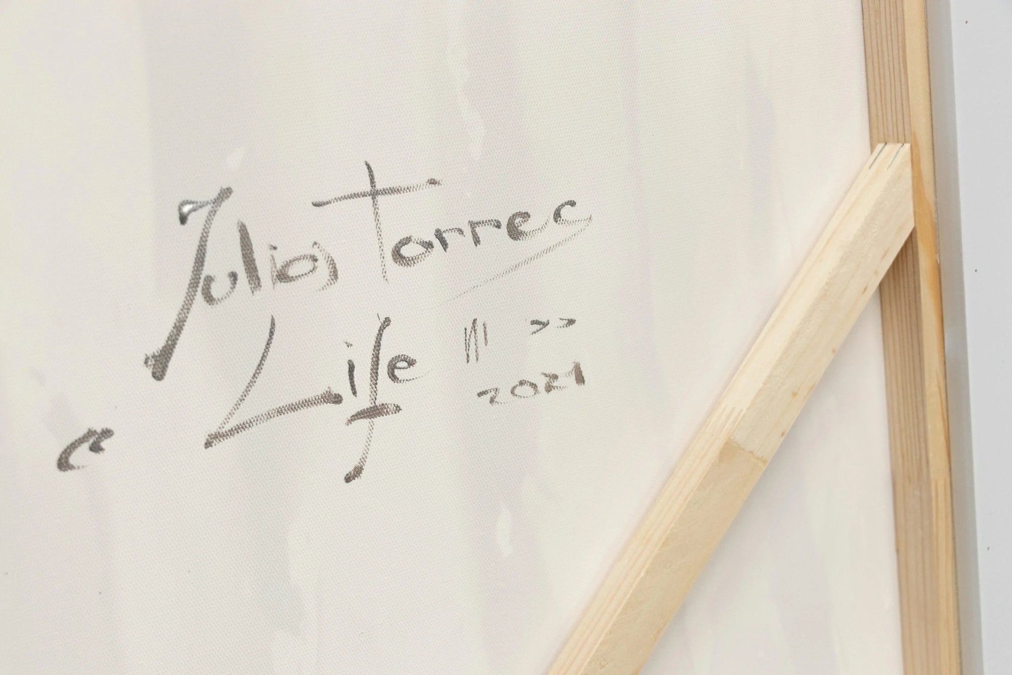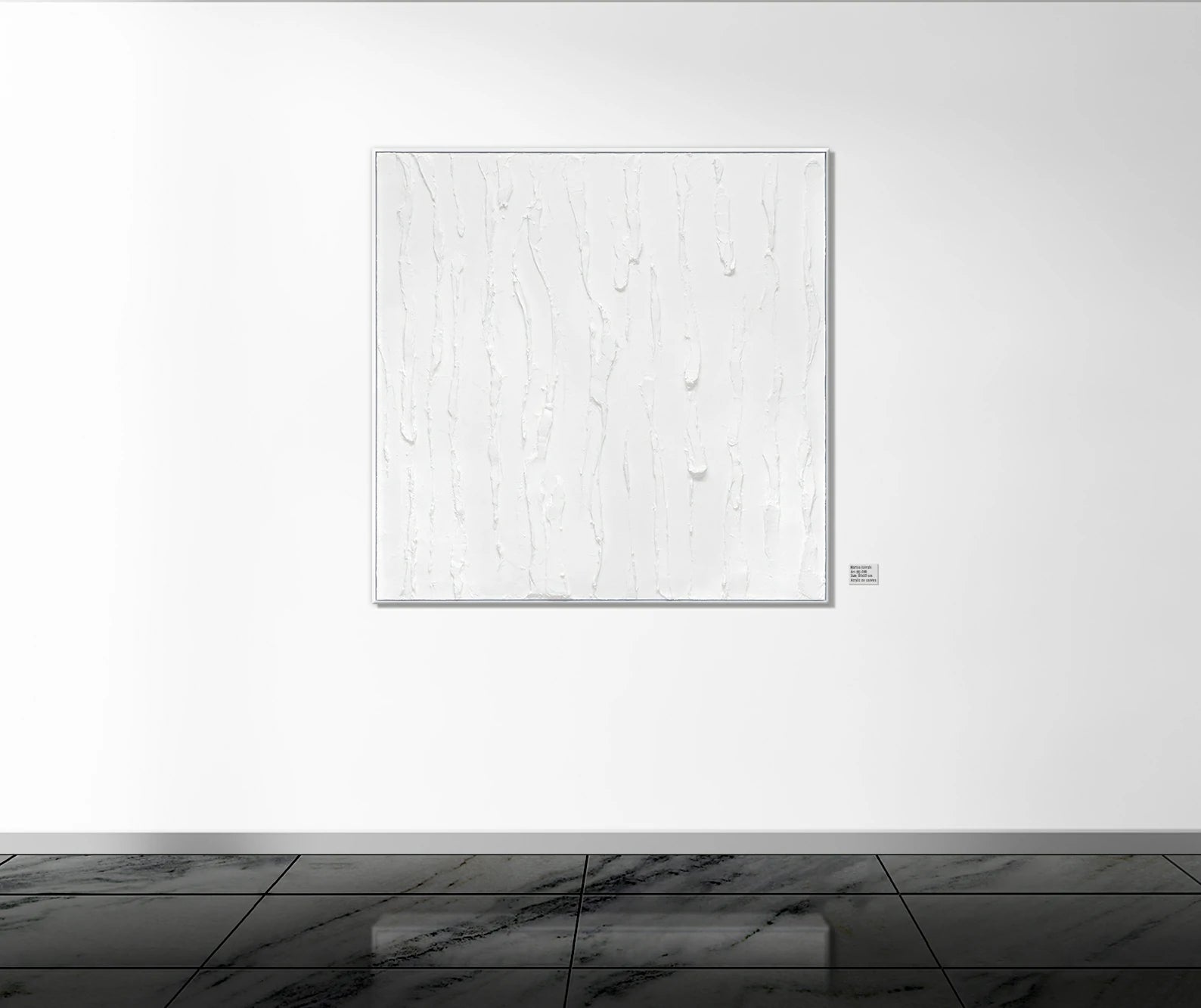 - Das Gemälde wird in einem weißen Rahmen gerahmt