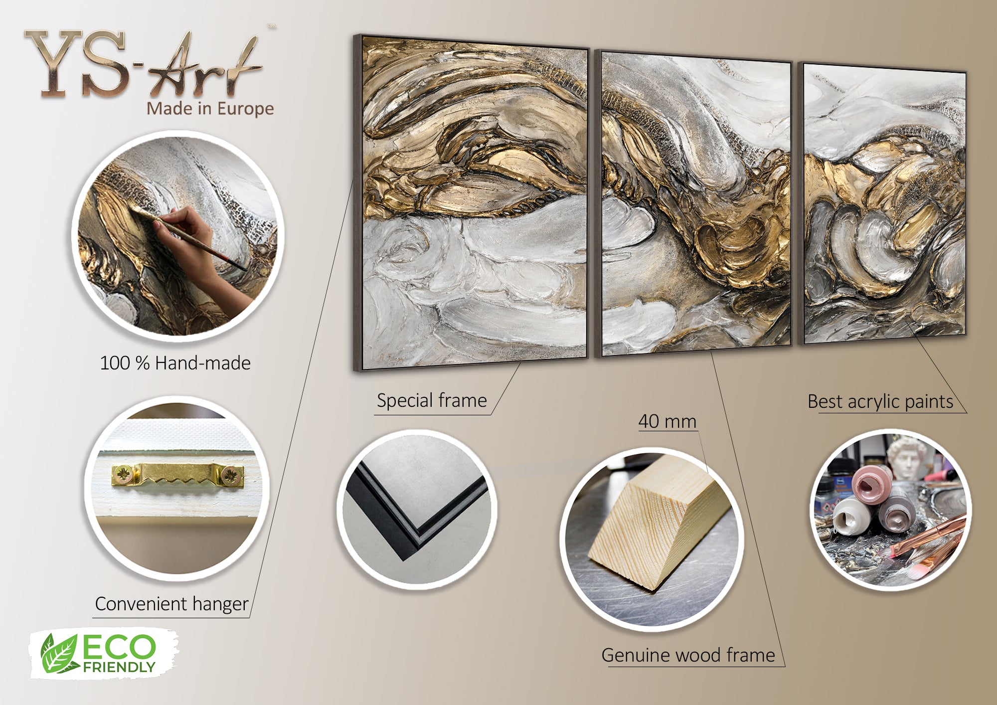 • Größe: 240x120 cm, 300x140 cm (Triptychon)