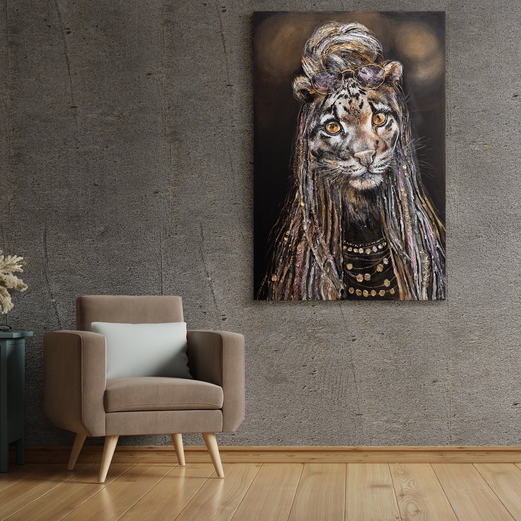 Ein Gemälde, in dem jedes Detail Stil, Luxus und Exklusivität darstellt. Dies ist eine Kombination aus Bohème und Unverschämtheit mit Noten moderner Raffinesse. Ein solches Kunstwerk unterstreicht Ihre Individualität und wird zum Hauptakzent in Ihrem Interieur.