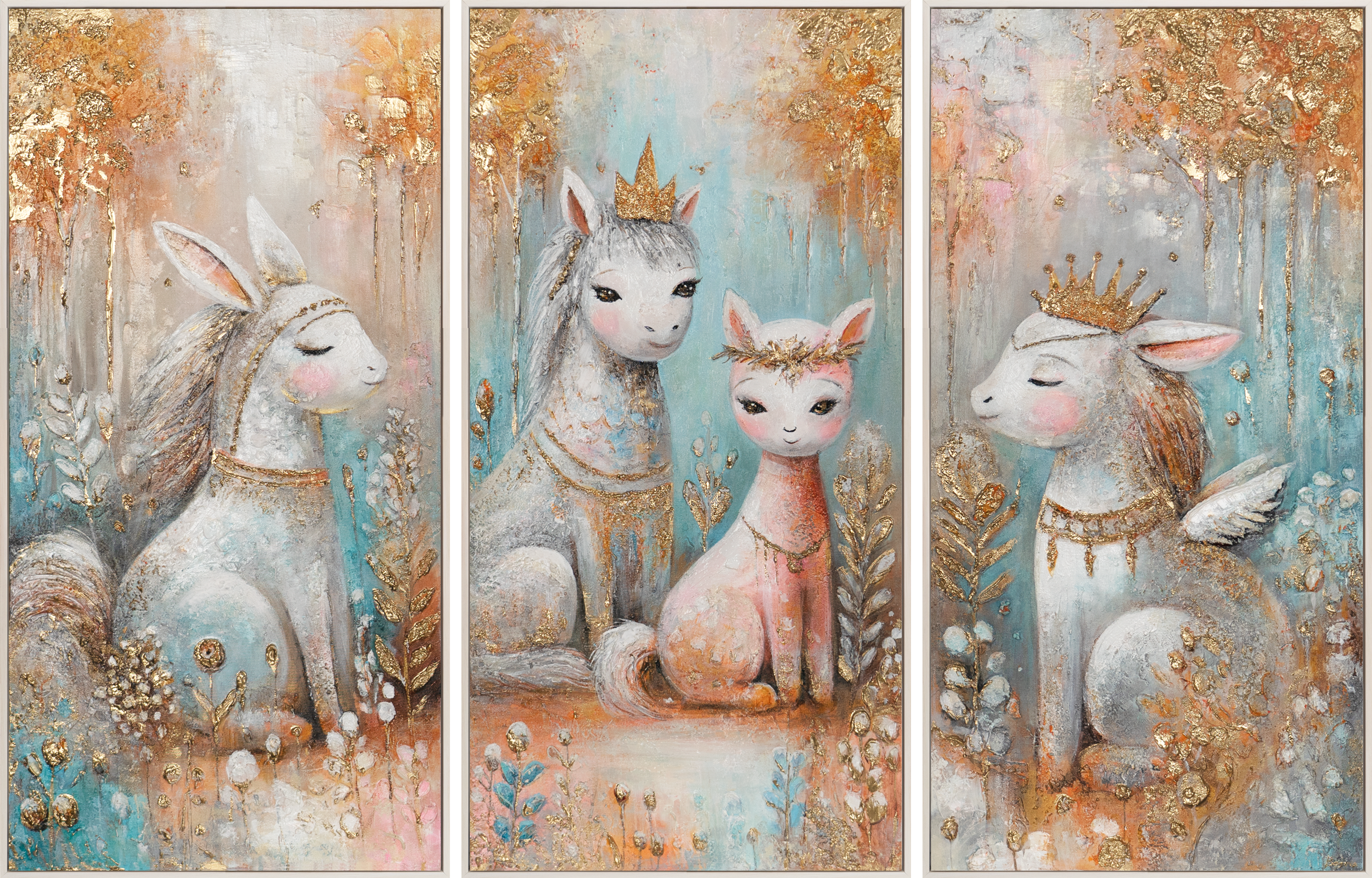 • Leinwandbild „Märchenhafte Wesen“ – dreiteiliges Wandbild für Kinderzimmer 240x120cm