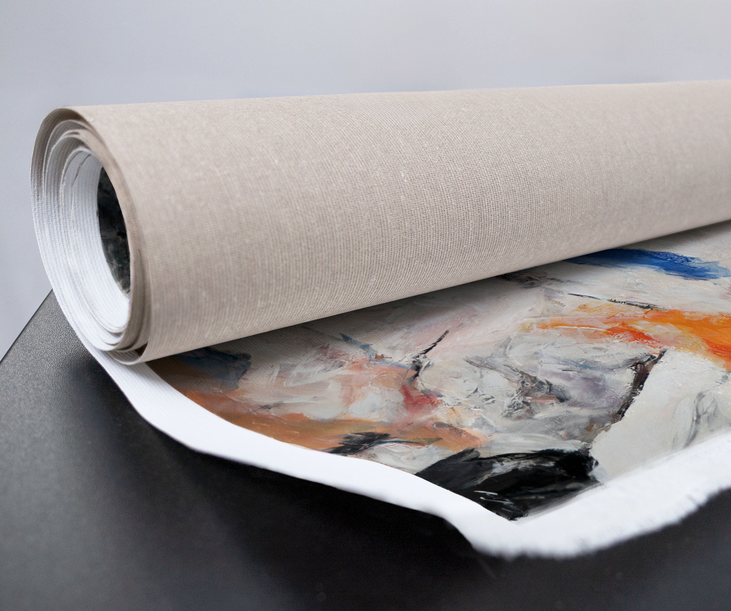 • gerollte Leinwand mit Farbdetails in Weiß und Grün
