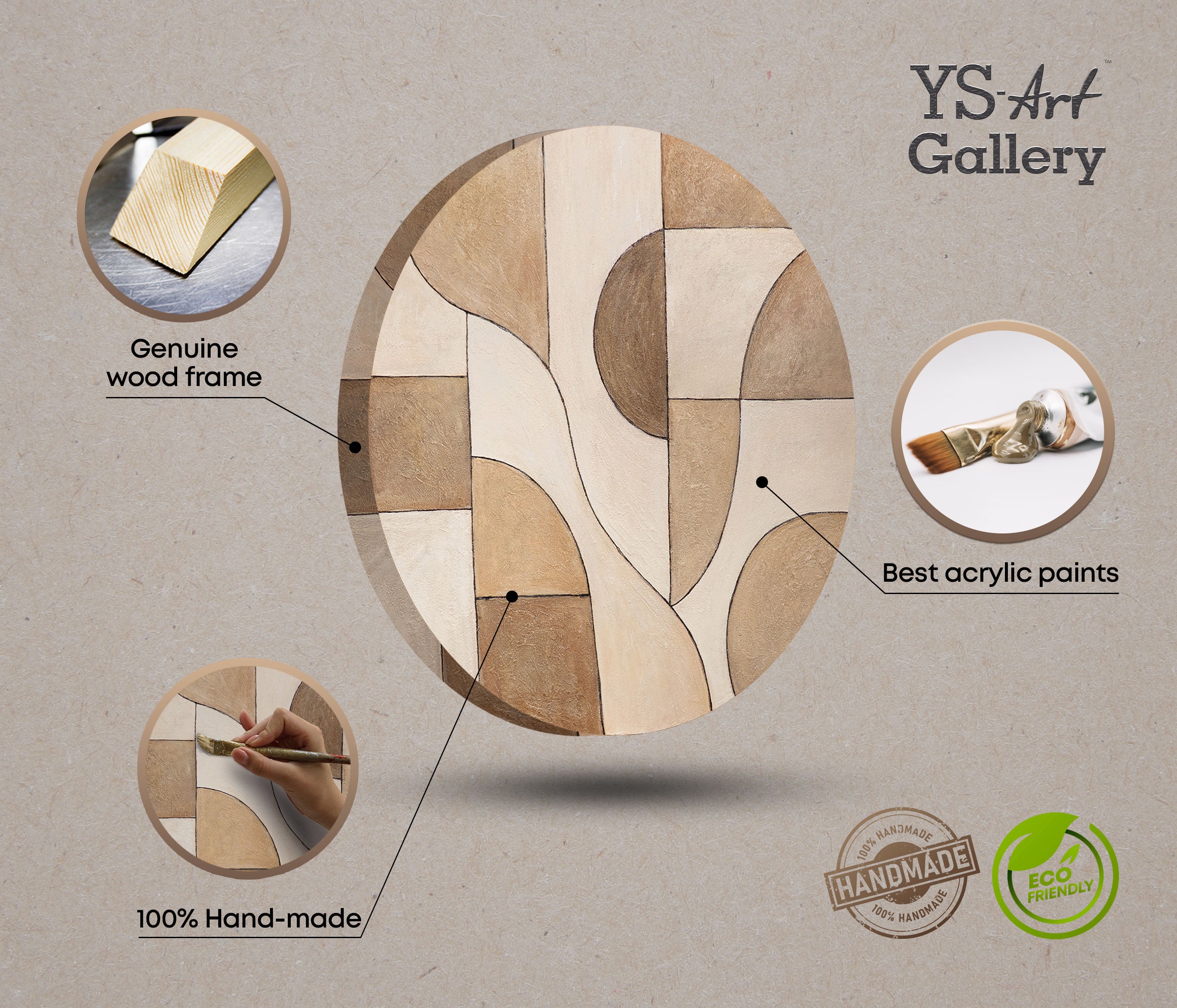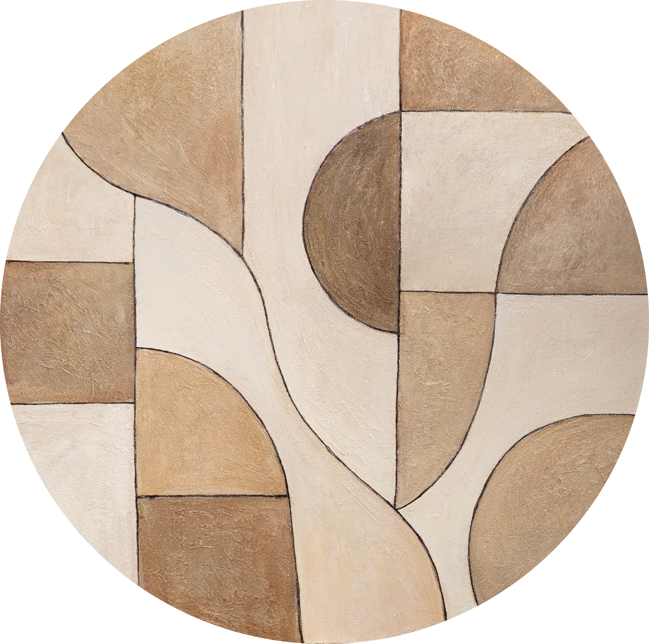 « Ornements du Temps » incarne le rythme des formes et le mouvement silencieux des années. Des lignes doucement courbes rencontrent des plans géométriques nets, instaurant un dialogue entre ordre et mouvement. Les tons beiges et bruns naturels confèrent à la composition chaleur, profondeur et une sérénité absolue.