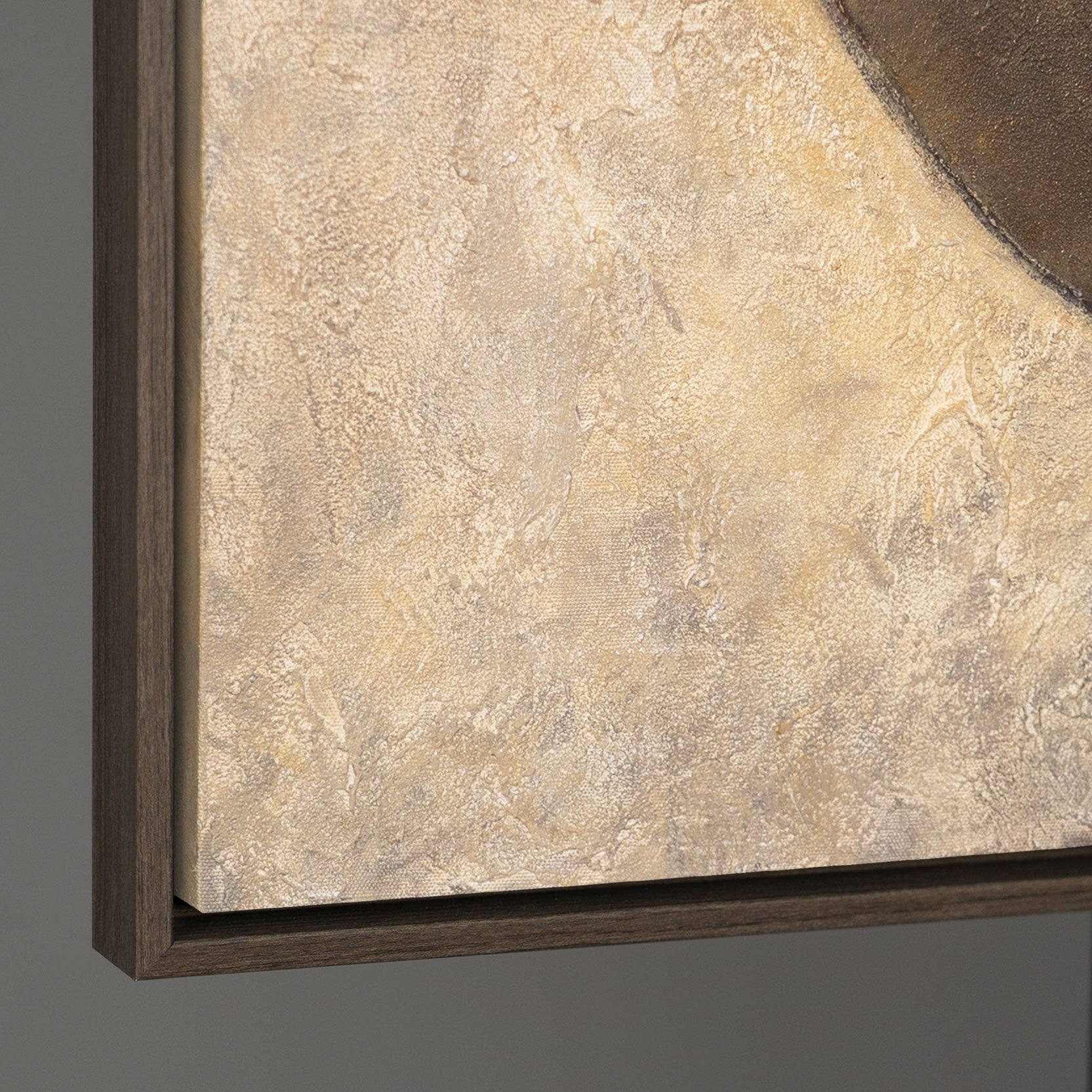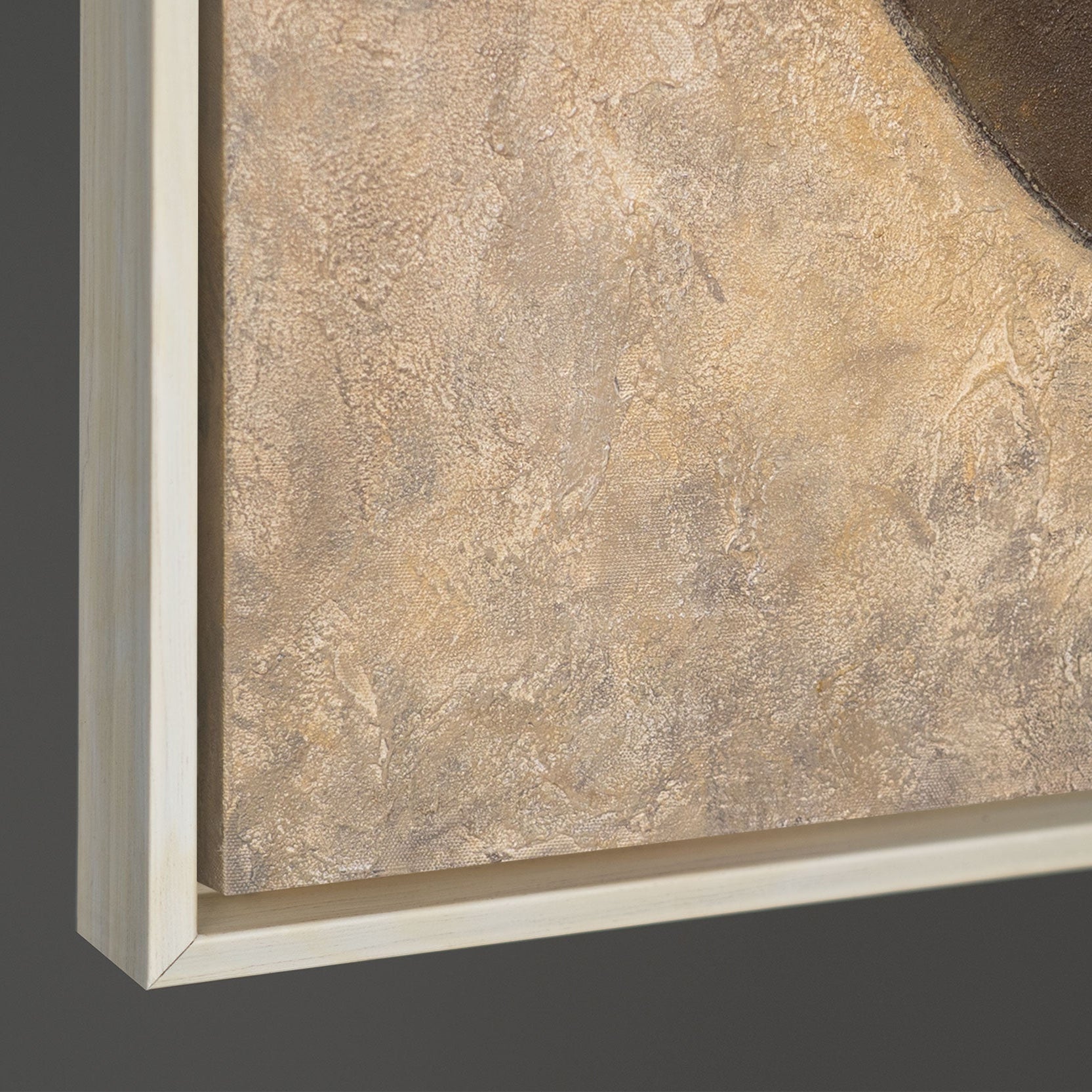 « Duo de demi-cercles » présente une composition harmonieuse de deux grandes formes semi-circulaires déclinées dans des nuances contrastées de beige, crème et foncé. La texture de la surface confère à l'œuvre profondeur et une présence tactile, tandis que les transitions délicatement sculptées créent un effet de calme et d'équilibre. Le design géométrique, à la fois moderne et intemporel, permet à cette pièce de servir d'élégant accent ou de point focal serein dans n'importe quelle pièce.