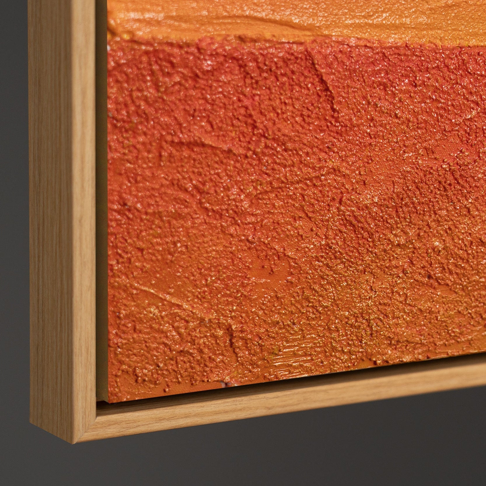 « Équilibre fertile » unit géométrie et nature dans une composition harmonieuse. La sphère orange vibrante symbolise l'énergie et la vie, tandis que les lignes épurées et les textures naturelles créent stabilité et sérénité. Des touches de bleu profond et d'ocre chaud confèrent à l'œuvre profondeur et expressivité.