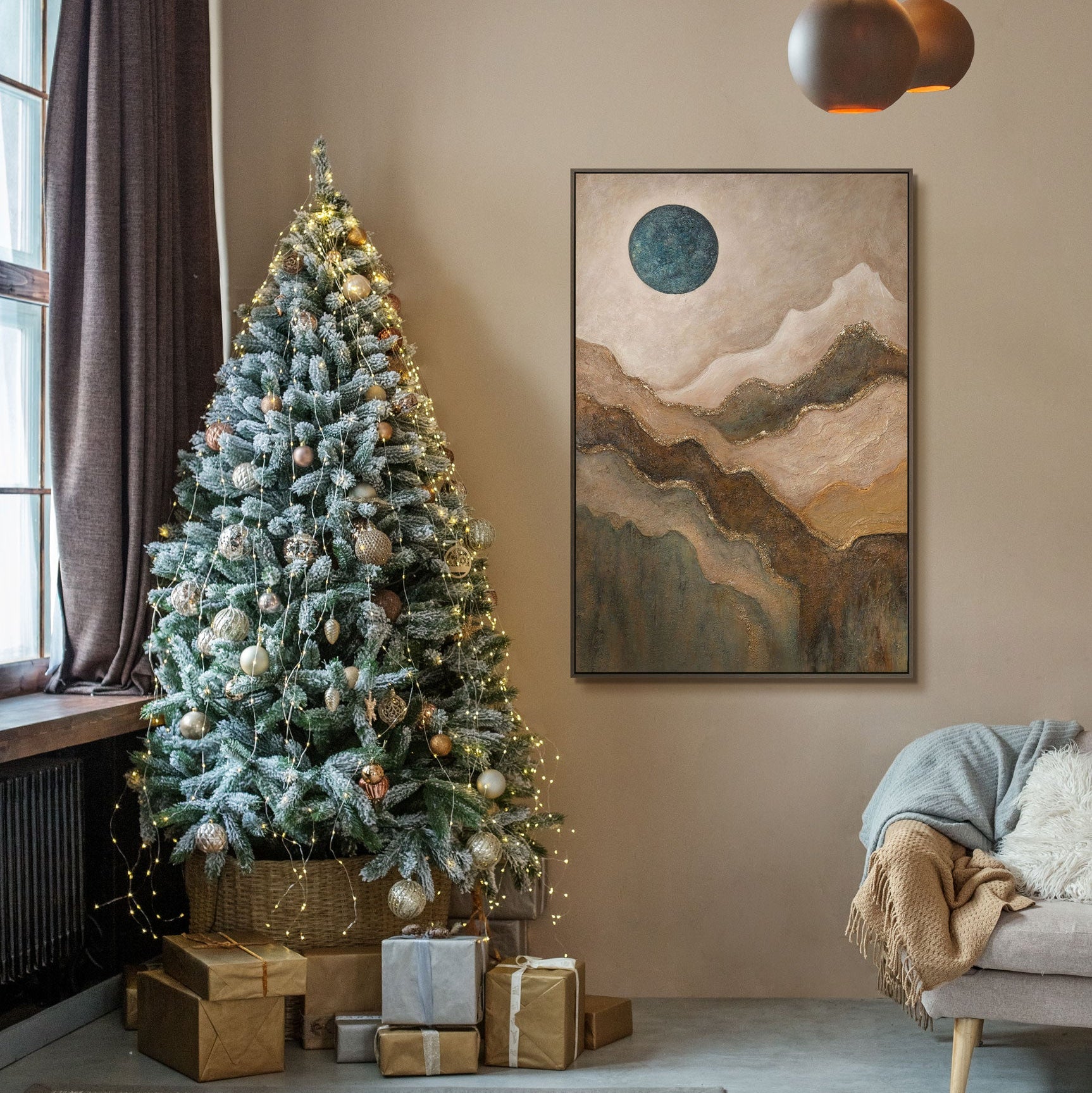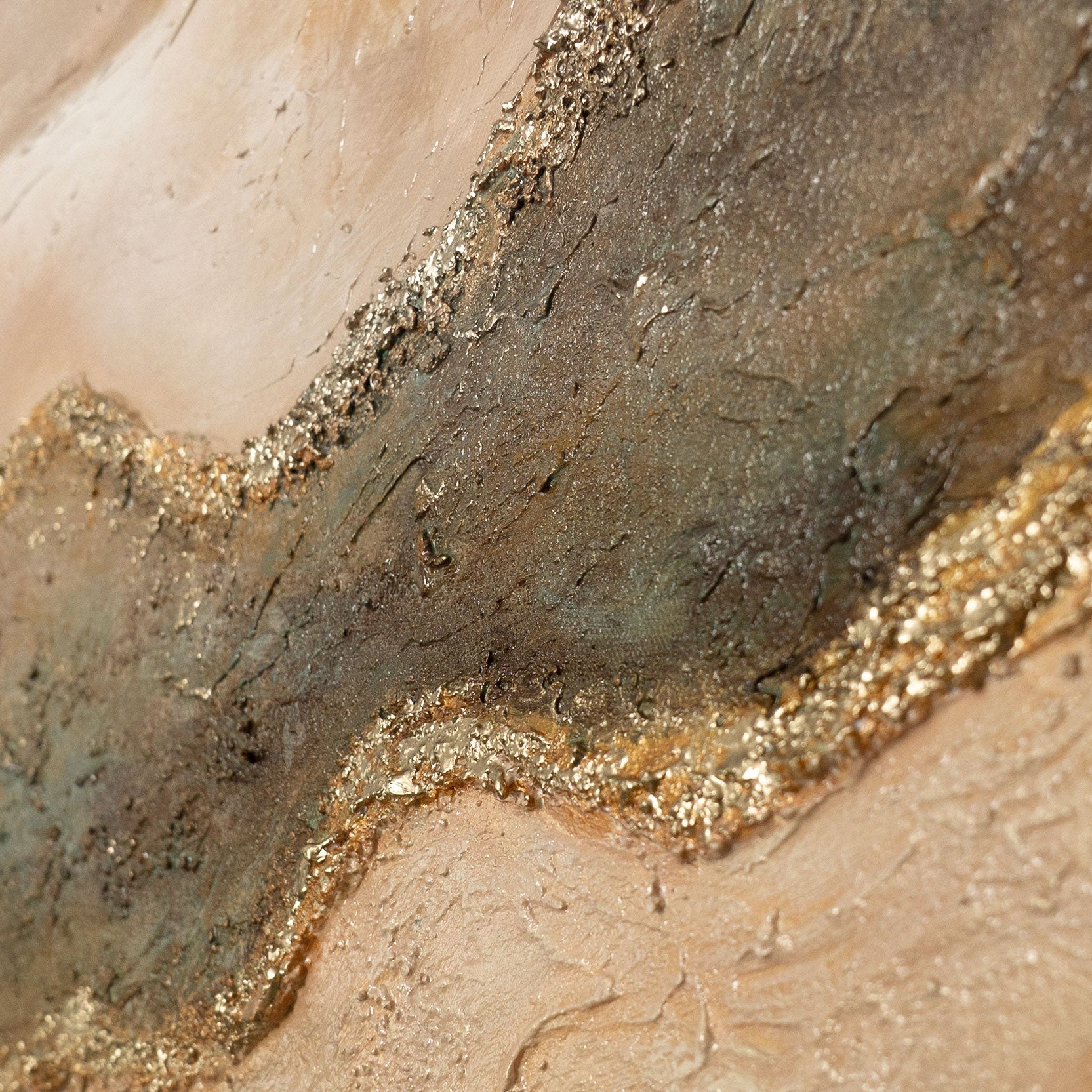 Cette peinture acrylique sur toile, réalisée à la main, allie l'authenticité à l'élégance. Sa surface texturée et le jeu des tons or, vert et beige en font une pièce maîtresse pour les espaces modernes, qu'il s'agisse d'un salon, d'un bureau ou d'une galerie. Une œuvre d'art murale moderne, peinte à la main en Allemagne, confectionnée avec soin, emballée avec précaution et livrée gratuitement.