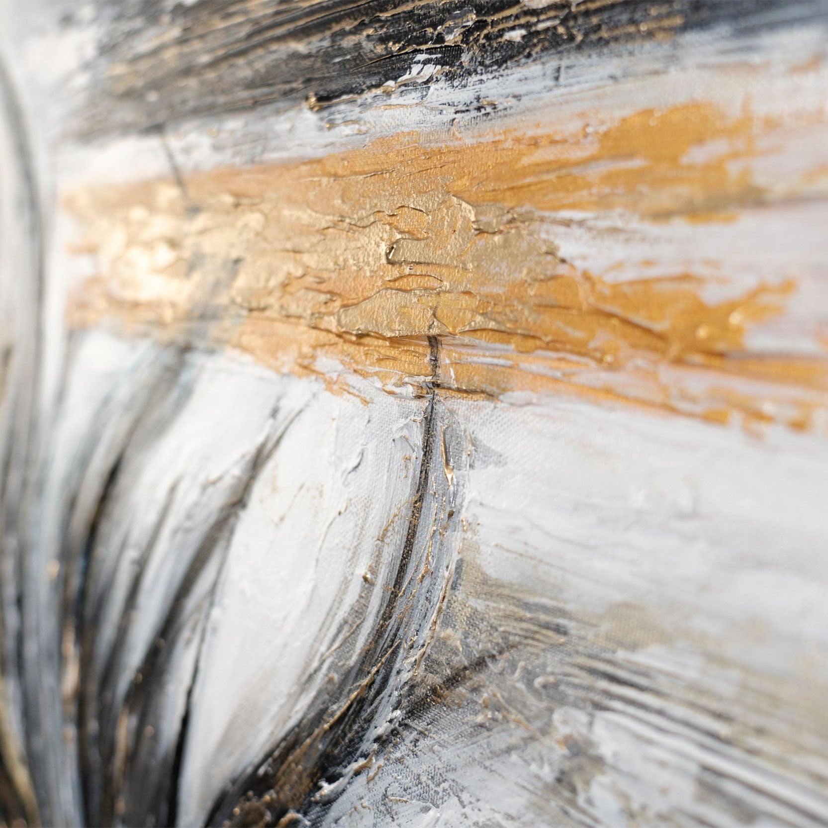 - Stil: Abstrakte Wandkunst, moderne Malerei mit metallischen Akzenten